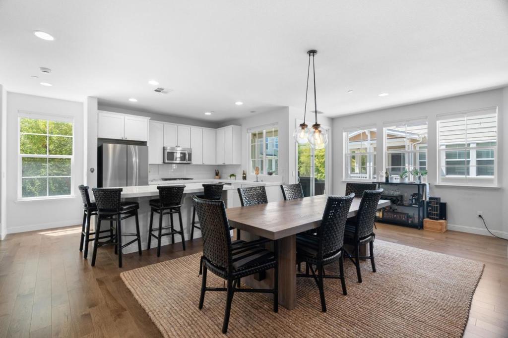 Stunning and spacious end-unit in the sought-after One Marina community, offering two luxurious primary suites and an expansive open-concept living space ideal for entertaining or everyday comfort. Highlights include a gourmet kitchen with premium finishes, Savannah Hickory hardwood floors, custom details throughout, a generous balcony, upstairs laundry room, and an oversized two-car garage. Feels like a single family home! None of the main living areas or bedrooms share walls with other units. Situated in one of the premier locations within the community, this home is filled with abundant natural light and features a rare, highly desirable floor plan. Enjoy waterfront living with direct access to kayaking, scenic trails, a nearby beach, and playground, along with convenient underpass access to vibrant downtown Redwood City. A truly special opportunity not to be missed.