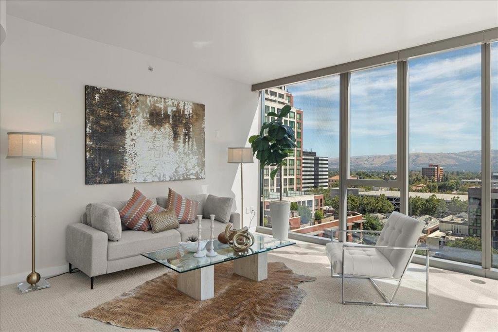 Enjoy gracious living at its nest in this upscale downtown corner-unit condo overlooking the eastern hills. Located in the heart of the city with easy access to all the downtown amenities including the Sharks arena, the Center for the Performing Arts, the SAP center and many venues for ne dining and cultural pursuits. Ceiling to oor windows provide a beautiful view of the sunrise and the eastern foothills. The Axis complex features a 24-hour concierge service, a tness center, a resndent's lounge, a pool with an outdoor replace, a jacuzzi, and excellent security. Additional features include New carpeting, kitchen with granite counters, new microwave, a counter depth refrigerator and hardwood floors; the master suite features a walk-in closet with custom built-ins; the master bath features a shower over a tub and ample storage; the second bath includes a washer and dryer and a walk-in shower, and underground parking with two designated spaces