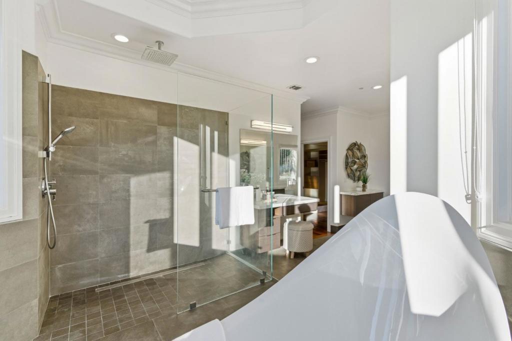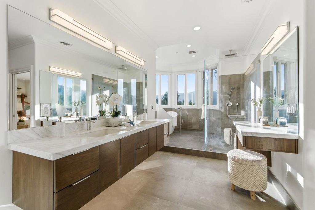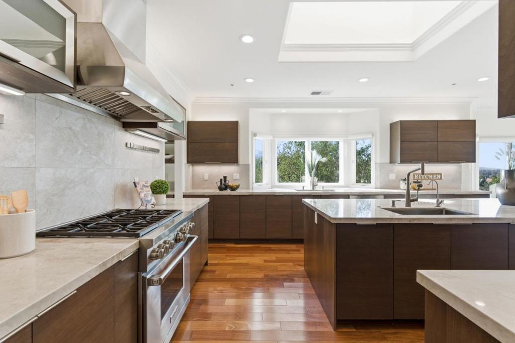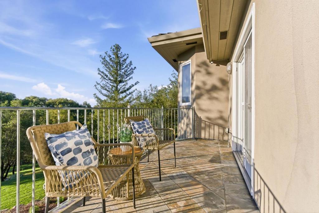 Stunning 4B+Office /3.5 bth residence with Los Gatos Schools. This home offers ~5,033 sqft luxurious living space, 2 suites, on ~1.08 acre of park-like land, just 10 minutes away from the downtown. Custom-built in 1991, it went thru a major renovation in 2017-18. Step inside to the 9-12 ft ceilings, an open floor plan and the peaceful views of the Hills! The main floor features a formal living room, dining room, an office, a large high-end kitchen, a spacious family room, the massive primary suite, a powder room & Laundry. The downstairs offers the 2nd suite, 2 more bedrooms w/ a jack & jill bath and walk-in closets, and a wine cellar. The kitchen showcases abundant Omega cabinetry w/ Italian quartzite countertops, large island under a skylight, 2 prep sinks, Sub-Zero refrigerator, Wolf cook range, Asko dishwasher, &butler's pantry. The spacious primary suite w/ a spa-like bath, walk-in closet & fireplace. Enjoy beautiful HW floors, double-pane windows & doors, Multi-zone HVAC, tankless heater, heated tile floors in all full baths, "TOTO" smart toilets, Porcelanosa premium tiles and designer fixtures. Finished 3-car garage. 6.39KW solar panels & 4 Tesla batteries. This exceptional home combines luxury, nature, and convenience in one of Silicon Valley's most desirable communities.
