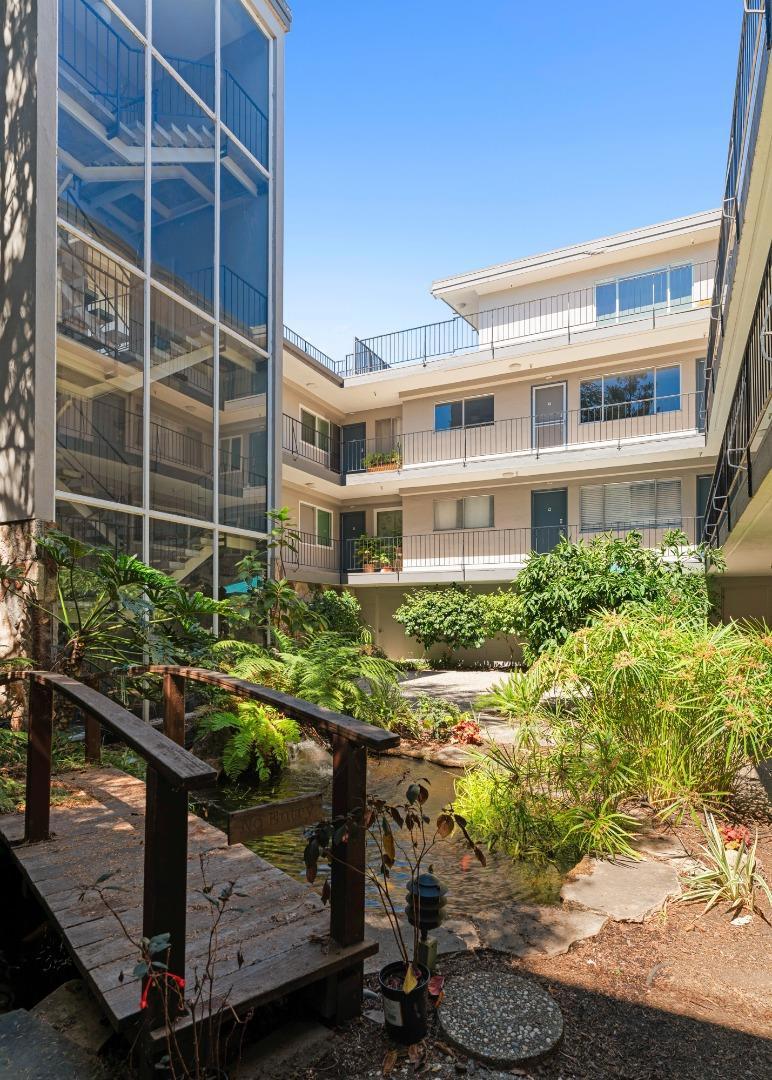 Discover comfort and convenience in this delightful 1 bedroom, 1 bath condo, ideally located just moments from vibrant downtown Redwood City, the heart of the Peninsula. Situated on the third floor of a well-maintained building with elevator access, this home features an open-concept living and dining area that flows effortlessly onto a private walk-out deck, perfect for relaxing or entertaining. The vintage-style kitchen includes a cozy breakfast counter, blending classic charm with everyday functionality. The spacious bedroom offers generous closet space, complemented by additional hallway storage. Enjoy beautifully landscaped grounds featuring a tranquil koi pond and a peaceful sitting area, an ideal retreat right outside your door. Additional highlights include dedicated parking, private storage, and common laundry, plus close proximity to shopping, dining, and public transportation. With its blend of comfort, character, and location, this condo is a true gem in the heart of the Peninsula!
