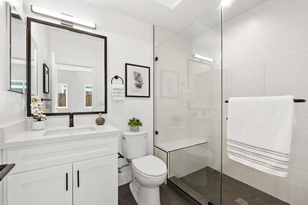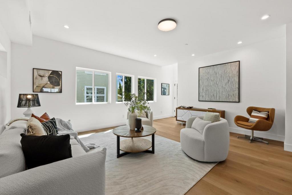 HUGE Price improvement - This new, 4-bedroom home in Mountain View is the last Unit out of 9 Units in the project and just completed in 2024.2025 - three-level residence offers 1,850 sf of living space tailored to the needs of a contemporary lifestyle. Enjoy a ground-level guest suite, the main level with open living space and a chef's kitchen, with lots storage space and a private balcony for al fresco enjoyment, and the expansive, upstairs primary suite. This stunning open-concept floor plan boasts West Elm lighting & high-end finishes throughout. The epitome of luxury living, from beautiful Flooring, Pantry, Shaker Cabinets, Double ovens, LaCava & Kohler bathroom Sinks, Toto toilets, dual-zone HVAC, Washer & Dryer. Window covering is included, as well as a private front porch, private balcony, and amazing low-maintenance landscape managed by the HOA. Attached, 2-car garage with a pre-installed wiring for EV charger, Plumbed for Solar. This location puts everything the area has to offer within easy reach - downtown Mountain View and Los Altos are short drives away; major Tech campuses, including Google, Microsoft, ARM, Intuit, NVIDIA, and Meta. A charming City park is almost next door. Featuring award-winning MV/Los Altos Schools (top-rated Los Altos High School).