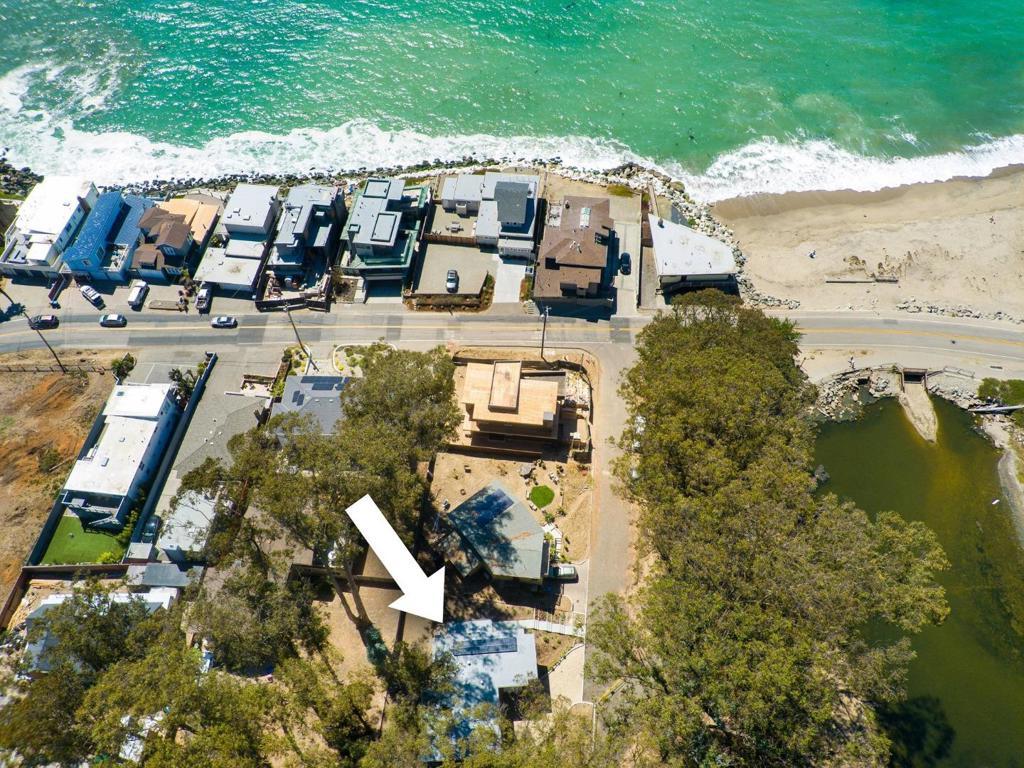 Refined Coastal Living, Effortlessly Experienced. Designed by a world-renowned architect and completed in 2023, this striking modern retreat offers a rare opportunity to slow down and savor life just steps from the sand and Moran Lake. Privately set on an expansive 15,246 SF lot along a quiet private road, the home evokes a sense of calm, space, and connection to its natural surroundings. Spanning 2,099 SF, the residence features 3 BRs and 3.5 baths, including a flexible lower-level bedroom and bath with separate entrance and private patio ideal for guests, extended stays, or a peaceful retreat. Clean lines and elevated finishes create a warm, modern sanctuary, complemented by bamboo flooring, custom maple cabinetry, distinctive Kerf door jambs, and a Mitsubishi mini-split system for year-round comfort. Soaring ceilings and expansive view windows invite sunlight to pour in, creating a light-filled, uplifting atmosphere throughout. The open-concept design flows seamlessly outdoors. A garage and ample additional parking provide everyday ease in this sought-after coastal setting. A rare opportunity to experience a newly built architectural home in an exceptional location, just moments from the rhythm of the ocean.