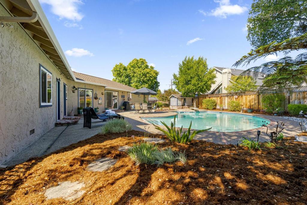 Move in and enjoy this beautiful 4 bedroom home on a large lot in a lovely Cambrian neighborhood. Tastefully remodeled and well maintained. Updated kitchen with granite countertops, oak cabinets and gas range. Two bright living areas. Recessed lighting & panel doors. Gleaming floors. All 4 bedrooms are spacious. Young roof. Inside laundry. Double-pane windows. Central A/C. Additional attic storage. Entertainers dream backyard with dining patios, pool and lawn. Yard space for expansion or ADU. Attached two car garage plus two oversized driveways. Nestled on a quiet street in gorgeous neighborhood near Los Gatos with great schools: Leigh High, Dartmouth or Union Middle, Carlton or Oster Elementary.