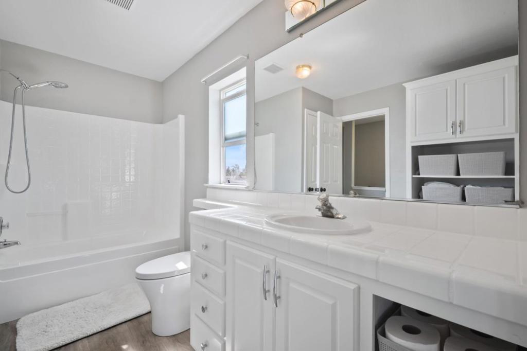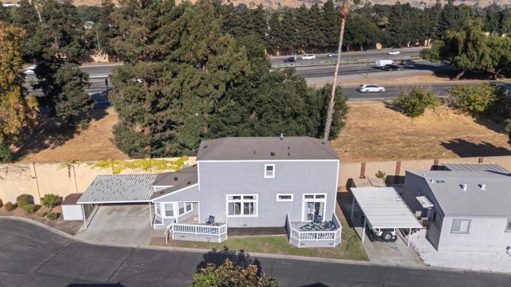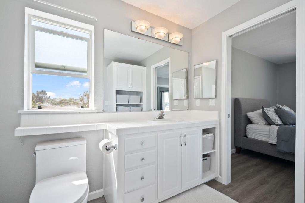 A rare two-story, three-bedroom, two-bathroom home in an all ages, pet friendly community. The bright living area is filled with abundant natural light and features insulated laminated flooring, updated lighting, and a custom stair railing. The fully remodeled kitchen offers quartz countertops with gold accents, a stylish backsplash, ZLINE hood, and Italian fireclay farmhouse sink. Bathrooms have been thoughtfully upgraded with skirted toilets, modern vanities, and shower heads with water filters. A full bedroom and bath on the main level provide flexibility for guests or multi-generational living, while the upstairs bedrooms, including the primary suite with sunset views, offer privacy and comfort. Additional highlights include side-by-side covered parking, a rare upgrade, as well as a brand-new electrical system, insta-hot tankless water heater, and shower filtration system. The community offers resort-style amenities such as a clubhouse, pool, cabana with kitchen for entertaining, and nightly security. This prime location provides easy access to Highways 101, 85, shopping centers, dining, and family-friendly recreation. Nearby, The Plex offers indoor sports, martial arts, a spa, and dining, while Coyote Creek Trail is perfect for cycling, running, and walking.
