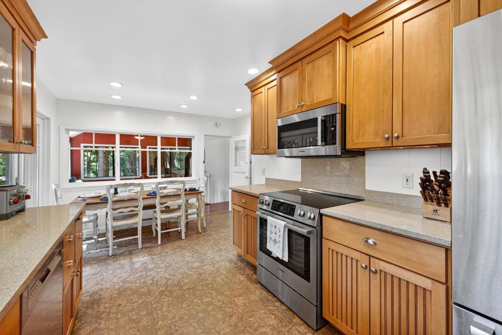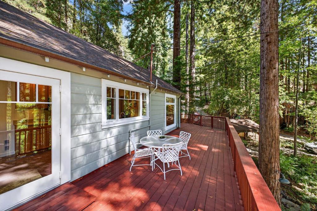 Welcome to 1480 Hillside Dr, a peaceful retreat in the private Bracken Brae community where you can enjoy exclusive trails and quiet river access. This 3 bedroom, 2 bath home welcomes you with a living room that features Brazilian cherry floors, an inviting wood burning stove, and sweeping redwood views. The bright, thoughtfully designed kitchen showcases quartz countertops and a suite of Bosch appliances, opening into a family room where wall to wall windows bring the forest right to you. Step out onto the spacious deck, perfect for family gatherings, entertaining friends, or simply relaxing in the fresh mountain air. Downstairs offers a private bedroom and bath along with a versatile bonus room that works beautifully as an office, playroom, or guest space. Central heating keeps you comfortable year round while the flexible layout gives you room to make it your own. With oversized parking for a boat or RV, a carport, two sheds for extra space, and an outdoor shower ideal after a swim in the river or for washing the dog, this home has all the room you need for both everyday living and outdoor adventures. Just minutes from downtown Boulder Creek and a short drive to Big Basin, this home is a true blend of comfort, nature, and community.