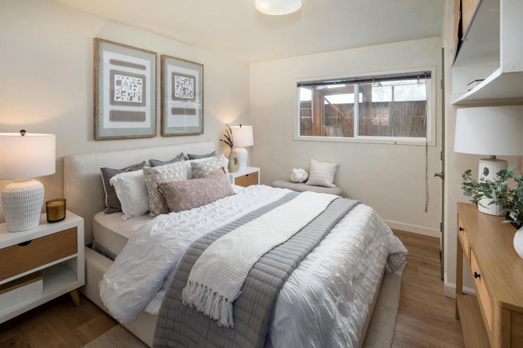 Tucked behind lush greenery lies a hidden gem in Palo Alto's Ventura neighborhood--a serene and understated home exuding quiet elegance. This 2-bedroom, 1.5-bath retreat offers abundant natural light and effortless, low-maintenance living. Light flooring and cabinetry, leather-finished granite countertops, and stainless steel appliances create a harmonious blend of style and tranquility. A detached bonus structure in the backyard provides versatile space for an office, studio, or creative retreat. Decorative reed fencing adds to the homes appeal. There is also a one car attached garage. With newly renovated Boulware Park just next door, minutes to shopping, midtown and downtown Palo Alto this home is a rare find offering both peace and convenience. (please note 1/2 bath was added without benefit of permit).