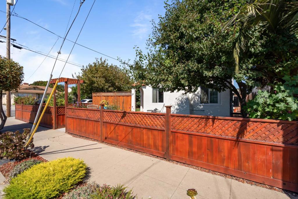 "Charming Spanish-style 2-bedroom home in South Salinas. Nestled on a desirable corner lot, this beautifully presented residence is in move-in condition with a host of upgrades. Recent improvements include a new roof, new windows, a walk-in closet off the main bedroom, new interior and exterior doors, a newly fenced front and backyard, a sprinkler system, additional electricity and water to the garage, and an upgraded electric panel in 2020. The home features warm hardwood floors, an inviting fireplace in the living room, and multiple windows that fill the space with light. The kitchen is a chef's delight, featuring stainless steel appliances, butcher block counters, and a designer backsplash. Outside, a private courtyard provides an ideal spot for gatherings with family and friends. The lush yard is planted with a variety of fruit trees, such as avocado, nectarine, lemon, orange, fig, and more, creating a little oasis. Conveniently located near parks, schools, downtown, the local hospital, and great shopping, this home truly has it all.