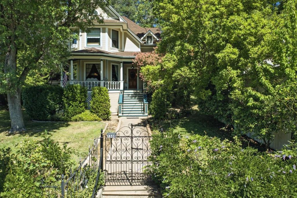 Architectural masterpiece about a mile from charming, downtown Jackson - near the old Kennedy Gold Mine - one of the deepest gold mines in the world. On the historical registry, and built by an Italian immigrant who arrived around 1850. While unsuccessful as a miner, he opened a thriving store, and after a visit to San Francisco, was inspired to build their family home next to the store around 1904. This well-maintained home features a spacious foyer and front living room with high ceilings, stunning floors with wood and marble (imported from Italy) around the fireplace - and a gorgeous formal dining room with in-wall cabinetry. There are three bedrooms upstairs and one bedroom is conveniently located downstairs - originally a formal sitting room. A modern eat-in kitchen with newer appliances leads to the screened informal dining area. A one/two bedroom apartment in the basement provides additional space for guests/innkeeper, and a perfect location for the brick wine cellar. A lovely, detached cottage allows guests a private space near greenhouse and gardens. Formerly a bed and breakfast, featuring a beautiful pool (with solar) and bocce court with figs, grapes, berries and apples. Discover the incredible history - entertain in this fantastic home - your country lifestyle awaits!