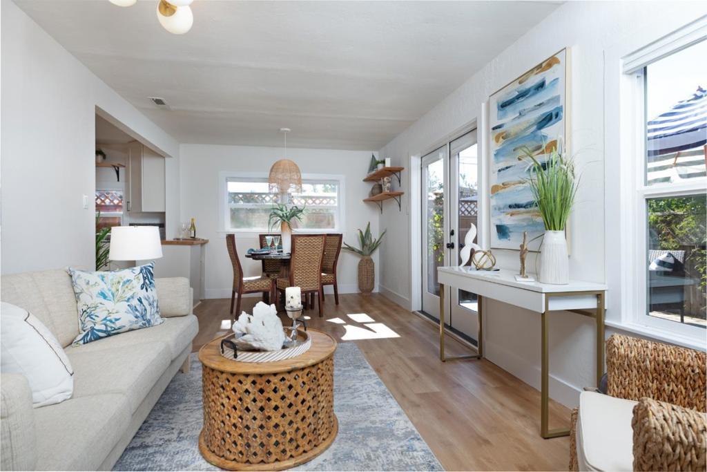 Tucked away in the heart of Seabright, this beach bungalow offers the perfect blend of comfort, privacy and coastal vibes, with peace and quiet and an abundance of natural light inviting you in. A remodeled kitchen opens to the dining and living areas and on to the deck, creating an ideal flow for everyday living and entertaining. Newer roof and HVAC, tankless water heater, updated bath, double pane windows and plank flooring, keep it stylish and practical. Plus a detached 135 sq ft finished outbuilding with wd floors and electricity, well-suited for a home office, studio, or creative space. Alleyway access on Windsor rather than Seabright and a gated front yard create a relaxed ambiance for this minimalist-style home. Hop on the bike and you are just minutes from the best of Santa Cruz beaches, shops and eateries, the harbor, hiking and biking trails. Seabright itself embodies the quintessential coastal vibe, with dog-friendly parks, summer bonfires and sailboat races, lively restaurants and bars, and Midtown Block Parties. Whether searching for a primary residence or weekend getaway, this home captures the spirit of Santa Cruz; laid-back, welcoming, and effortlessly cool. Are you ready to make this Seabright treasure your coastal haven? Note: furniture staging has been removed