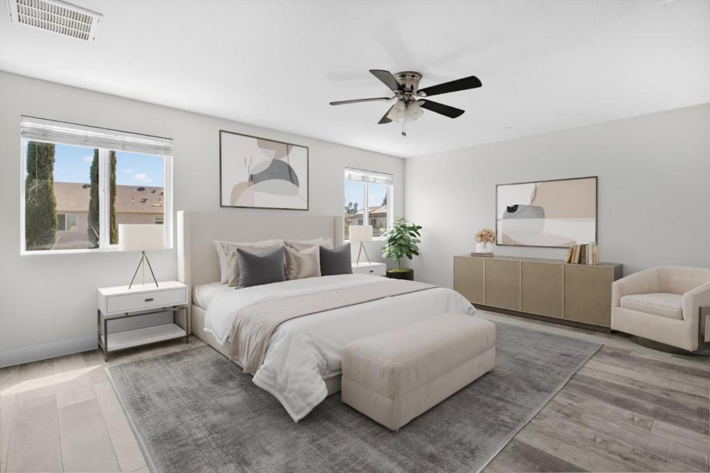 MOVE-IN READY - NO HOA: A newly renovated, spacious 5 Bed 3 Bath home sits on a premium $13K lot a quite cul-de-sac lot(away from railroad and busy street n top-tier community. open-concept main level, where soaring 9-foot ceilings and gorgeous red oak hardwood floors stains in French Gray, create an immediate sense of grandeur. The kitchen features elegant new granite countertops and a massive 33" farmhouse sink. The large island makes it the perfect hub for gathering friends and family. The master suite is a luxurious retreat w an enormous walk-in closet, while the entire second floor and stairs are finished with new waterproof laminate flooring. The master and hall baths feature new defogging mirrors. A downstairs bedroom offers a perfect, private space for guests or multi-generational living. Every corner is bathed in light from 32 brand-new LED lights, n new 5.5-inch baseboards add a final touch of polish. renovation cost ~$60K; Step outside to your private, low-maintenance oasis. The backyard features a French drainage system n a treasure trove of mature citrus and peach trees, providing fresh fruit all year long. Just walk n turn the corner to the award-winning Peyton Elementary n Middle schools n the community park. Easy access to FWY 99, 4, and 5. Plus, nearby shopping: