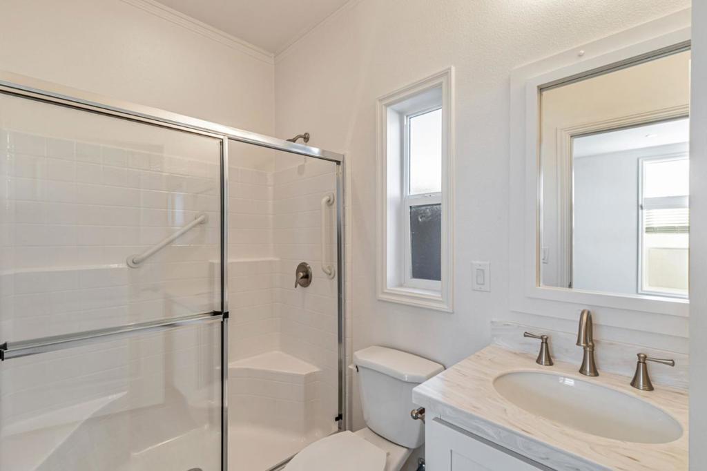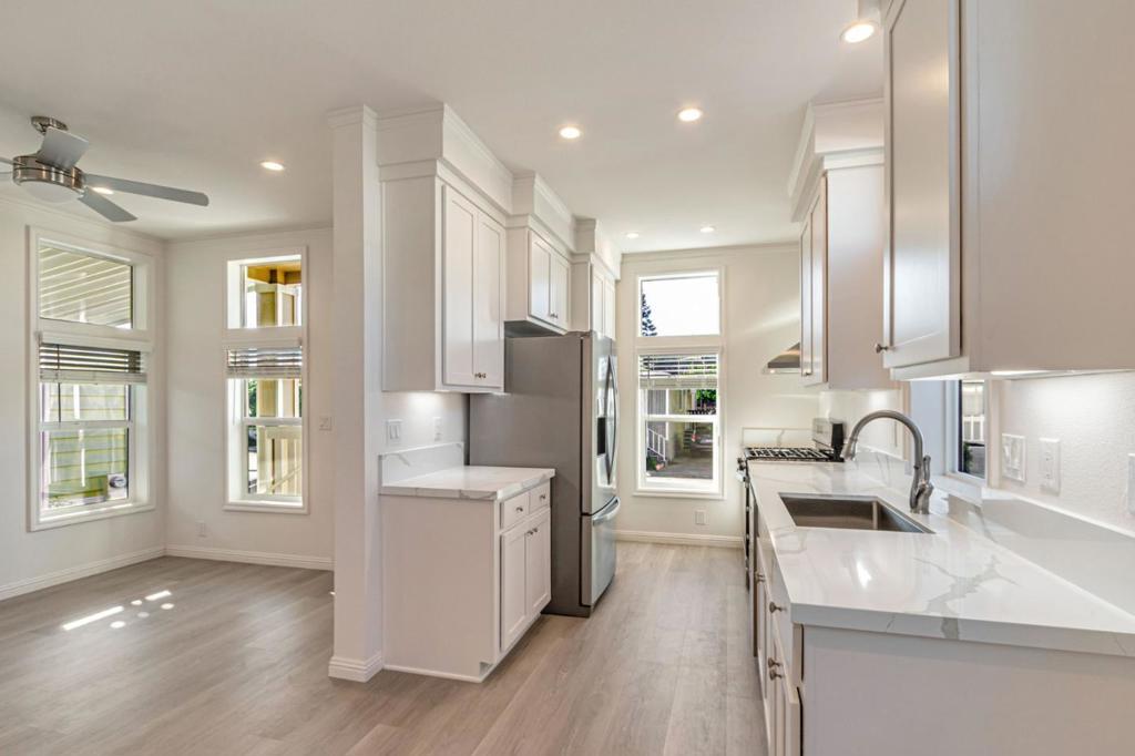 Welcome to this inviting 3-bedroom, 2-bath home offering approximately 978 sq. ft. of thoughtfully designed living space. The interior showcases crisp all-white cabinetry, sleek stainless steel appliances, and an open layout perfect for both relaxing and entertaining. Energy-efficient features throughout the home help reduce utility costs while providing year-round comfort. Nestled in a desirable senior community, this home offers a great location with convenient access to shopping, dining, and neighborhood amenities.