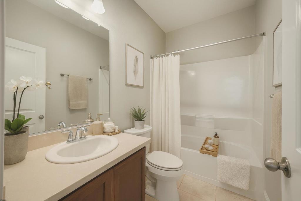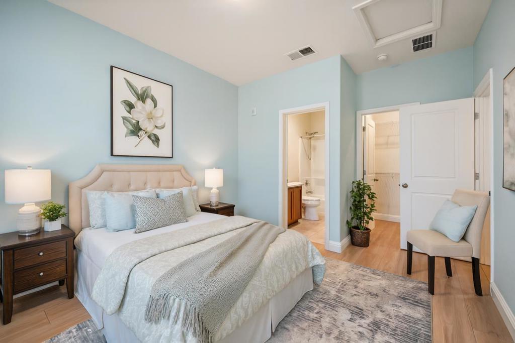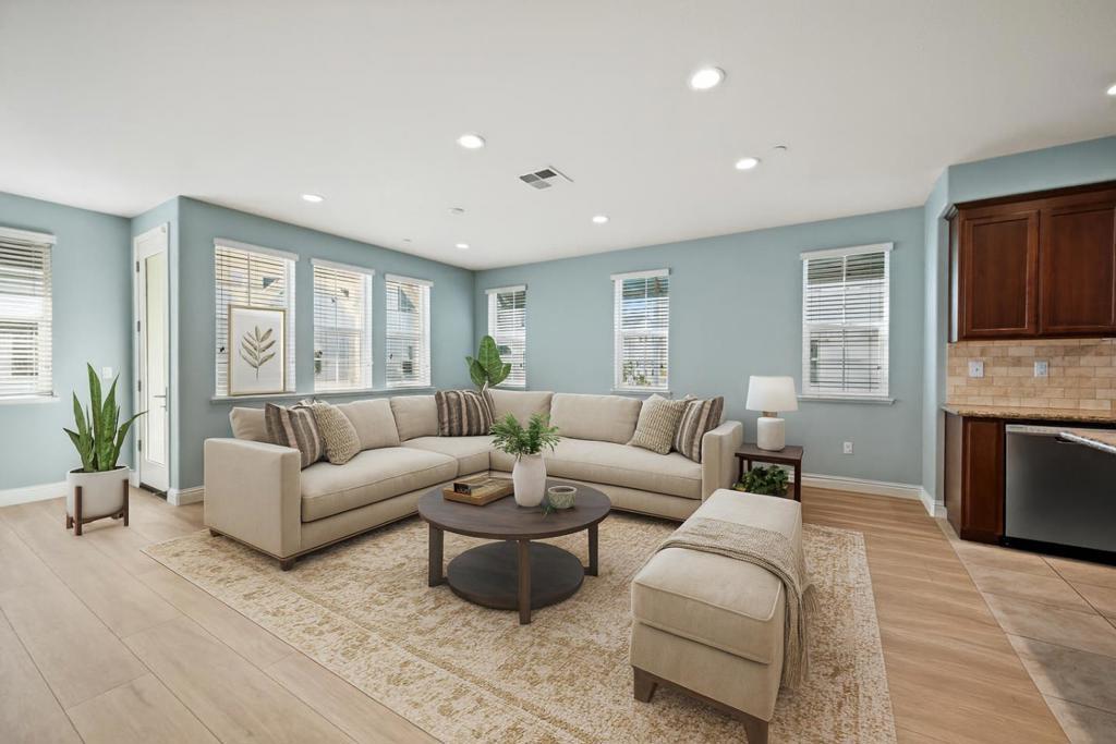 Welcome to this beautifully appointed D R Horton Traditions two-bedroom model offering modern comfort and exceptional convenience in the heart of Milpitas. This home features newly installed engineered wood floors, tall ceilings, a bright open floor plan and air conditioning for year-round comfort. Many large windows bring in wonderful natural light, creating a warm and inviting atmosphere. Situated within walking distance to the Great Mall, restaurants, Trader Joe's, parks and highly rated Mabel Mattos elementary school. Close proximity to 237,880, 680, BART and light rail. Don't miss this beautifully maintained and move-in ready home with east facing front door.