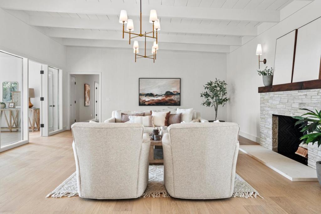 A very modern Mid-Century Modern this extensively renovated single level home retains all the character and design from the day with a delightful selection of fit and finishes in vogue today. Created with walls of windows on all sides the interior is like a beacon of light while still retaining privacy inside. Featuring high beamed ceilings throughout, adding an extra dimension to its size, the over 3,000 SF of space has within a great room living and kitchen room, a view dining and family room, 4 bedrooms or 3 with an ideal den and a private interior courtyard with firepit. Finished with wide plank wood floors, stone counters, designer bathroom tiles and floors and accent lighting all around the interior is a delight of open spacious all the while offering an abundance of cozy places. Set up high on a flat area of land the original 1948 homeowner had the chance to choose one of the better parcels of land to be had with a nice outlook of mountains and some ocean views at hand. A truly refreshing and enjoyable place to call home.