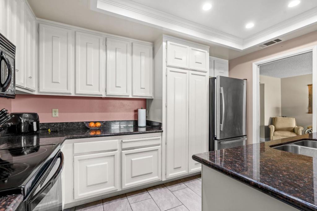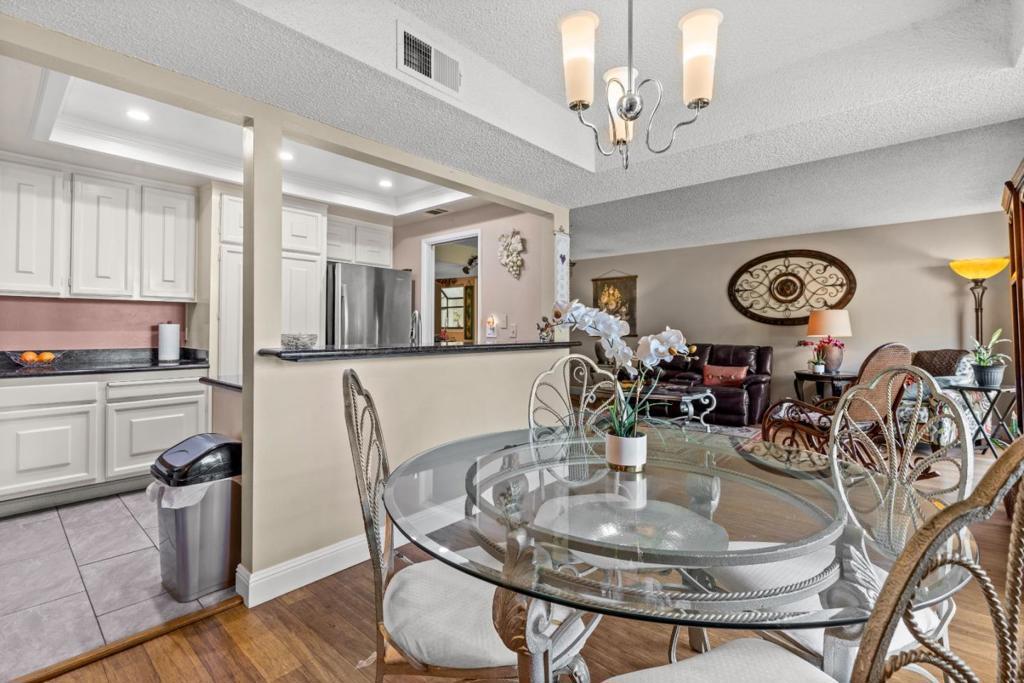 Welcome to this inviting condo in The Villages Golf & Country Club, a premier 55+ community. This home offers a private back patio w/ peaceful views, perfect for relaxing in comfort & privacy. Inside, the updated kitchen features painted cabinets, a spacious pantry, stainless steel appliances, & granite countertops. The highly sought-after open-concept floor plan seamlessly connects the kitchen to the dining area, w/ the sink positioned to overlook the patio and greenery beyond. Both bathrooms have been refreshed w/ modern fixtures & lighting, while tile flooring in the bathrooms & laminate throughout the living areas combine style w/ low-maintenance living. An interior laundry in the storage room & a covered parking spot just steps away add everyday convenience. Life at The Villages offers resort-style amenities including a championship 18-hole golf course, a 9-hole course, & a driving range. Residents enjoy tennis, pickleball, bocce, six pools, four spas, a fitness center, horseback riding, & scenic hiking trails. The community also features a library, post office, community center, & dining options ranging from the casual bistro to fine dining in the clubhouse.
