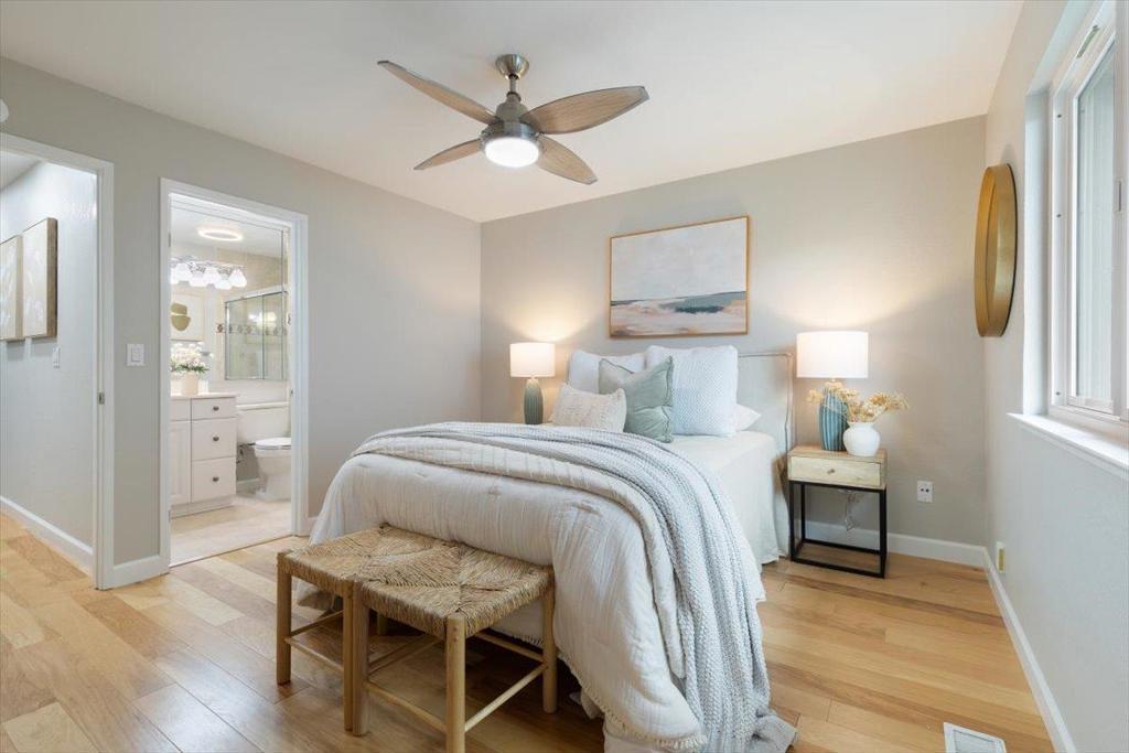 ATTRACTIVE NEW PRICE AND READY TO MOVE IN! Beautifully updated Buena Vista Greens home, perfect for first-time buyers or those looking to downsize in a central Silicon Valley location! Tucked in the back of a secure gated townhome style community, this 2-level home offers 2 bedrooms, 2.5 bathrooms, and a private fenced backyard. Part of a small, well-maintained enclave of just 16 units with very low turnover, it provides a quiet and established setting. The smart floorplan includes two upstairs primary suites for privacy, plus a convenient guest half bath on the main level. The remodeled kitchen features quartz countertops, stainless steel appliances, updated cabinetry, garbage disposal, and microwave/hood combo. Light-filled living and dining areas open seamlessly to the backyard, ideal for relaxing or entertaining. Recent updates include refreshed bathrooms, recessed LED lighting, dual-pane windows, and fresh interior paint. Comforts include central heating/AC, a dedicated carport plus additional parking. Ideally located near Santana Row, downtown San Jose, SAP Center, Diridon Station, shopping, dining, and major employers, with easy access to 280, 680, 87, 101, 880, 17, and Light Rail. Truly move-in ready!