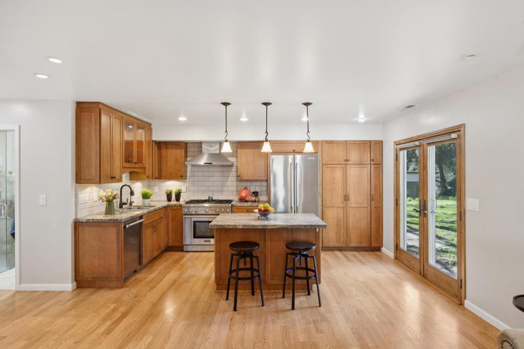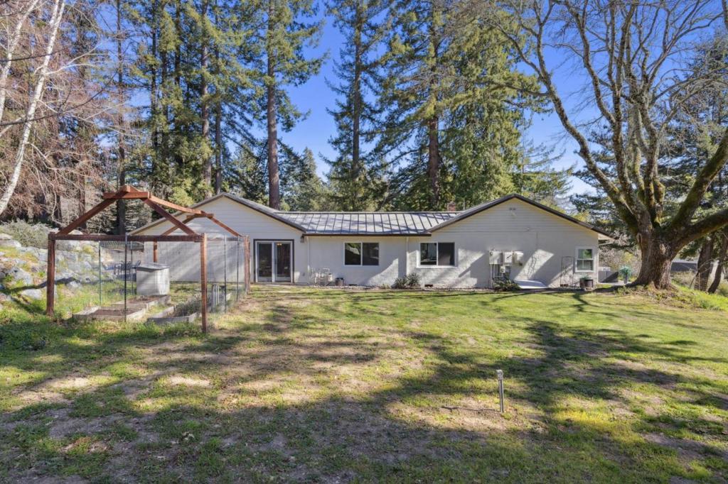 Only 0.3miles/1minute from Hwy 17/Summit! Single story 3 bed/2 bath mid century home plus 1 bed/1bath apartment on approx 1.4ac, mostly flat! Huge open kitchen features new tile flooring, new cabinetry, quartz counter tops, new stainless appliances, new light fixtures and spacious dining and/or family room area with large skylight. Separate living room with new French doors, woodburning fireplace with stone hearth, and wood plank ceilings. Two full bathrooms, both updated. The 1 bedroom 1 bathroom apartment can be accessed through the garage, or separate exterior entry from side patio. Newer unit, features open floorplan, with lots of natural light, granite counters/island. Previously rented for $3000/month. Detached art studio/office with large picture window. The land is sunny and ALL usable, the possibilities are almost endless. Long private driveway, existing horse stall, fenced garden, expansive level lawn. The lower area is completely level, formerly the site of a riding arena - ample space for equestrian use, pool, sport court, parking for oversized vehicles, boat/RV. New 24x36 concrete pad ready for your workshop, barn or additional garage. Quiet setting, set back from Summit Rd, cute school bus stop at the end of the shared driveway!