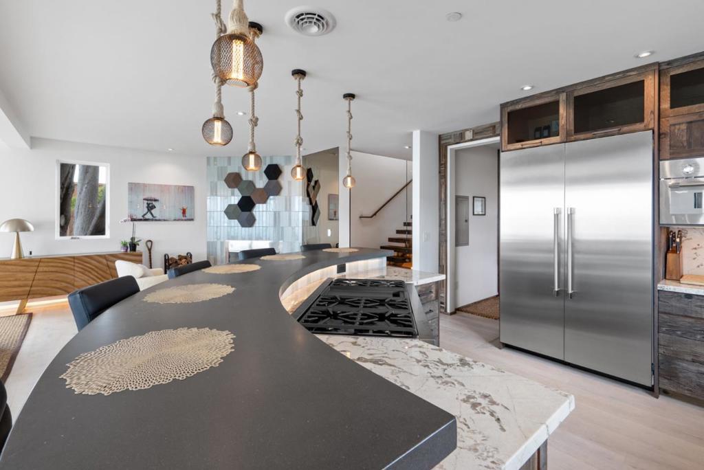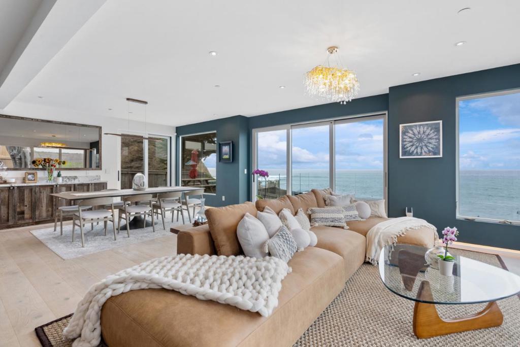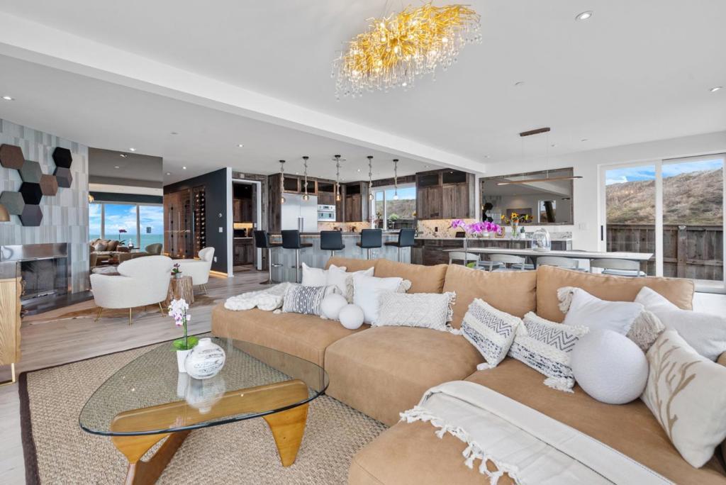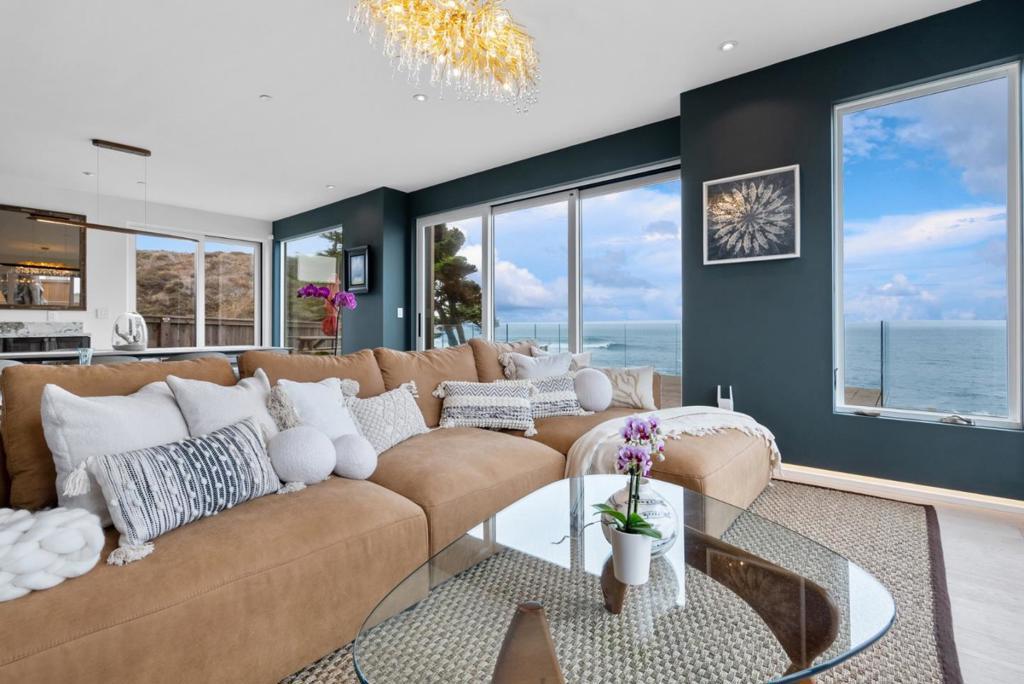 Experience The Landing, designed for those who break boundaries and seek inspiration at the waters edge. Discreetly positioned on one of Northern Californias most exclusive stretches of coastline where homes rarely become available, this modern beach sanctuary is just ten minutes from Santa Cruz's vibrant tech and surf scene, one hour from SFO, and literally steps from the Pacific. Legendary surf breaks flank both sides of your private backyard, making it effortless to slip out for a dawn session or host board meetings on the sand. Every room in this 5-bedroom, 4 full and 2 half-bath masterpiece is enveloped by panoramic ocean views and filled with the sounds of saltwater and wildlife. This timeless, whimsical state-of-the-art design features a walk-in pantry, climate-controlled wine wall, immersive home theater, radiant floors, and smart lighting with over 176 programmable options for every mood. The homes custom woodwork, made from reclaimed redwood, honors the past while curating an atmosphere of bold possibility. The expansive, modern kitchen and open living spaces are playgrounds for private indulgence or dynamic gatherings, while a Zen garden adds tranquility just steps from the surf. Approved plans included for a two+ car garage and artist loft above with ocean views.