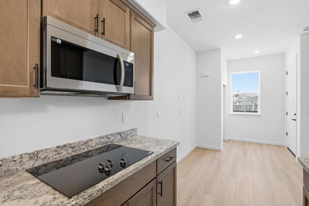 Homebuyer Favorite! Enjoy extra space with an ADU (accessory dwelling unit) complete with separate entrance, kitchen and full bath. The main home showcases a bright and spacious dining and living area (leading to your own private outdoor deck), a modern kitchen with an island and pendant lighting, granite countertops and stainless-steel appliances. Convenient bedroom and full bath on same floor. On the 3rd floor, a large primary bedroom leads to a walk-in closet. Luxury vinyl plank flooring throughout. Other features include a 40-amp. electric charging station pre-wiring, solar energy system (lease or purchase required) and a limited 10-year warranty. This brand-new community will feature a community play area, bike lane, bike racks and bike repair station, plus park-like areas with seating, open space and art installations. Walking distance to Castro Valley BART station; convenient to I-580 and Tri Valley, San Jose and Mid-Peninsula job centers. Close to outdoor recreation, including Chabot Regional Park and Cull Canyon Regional Recreation Area. Be home for the holidays. Schedule a tour today.