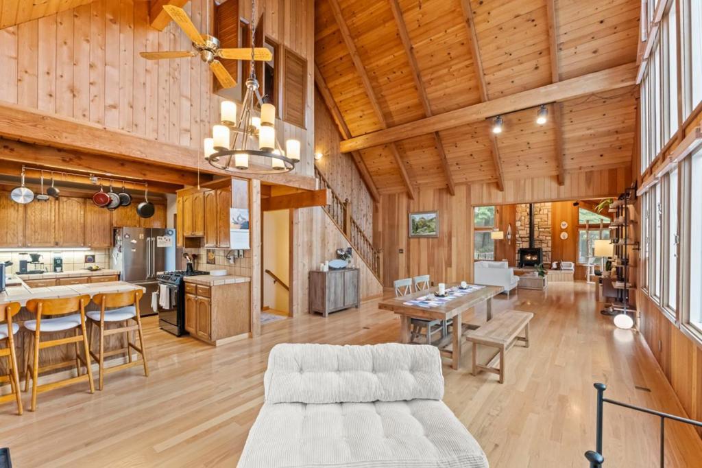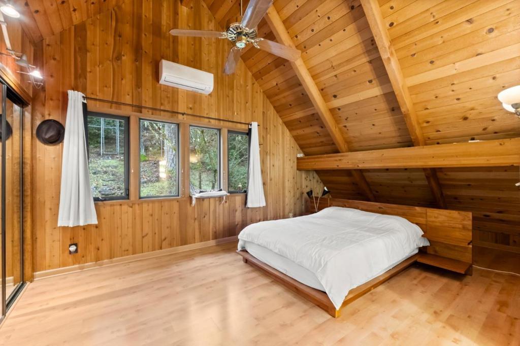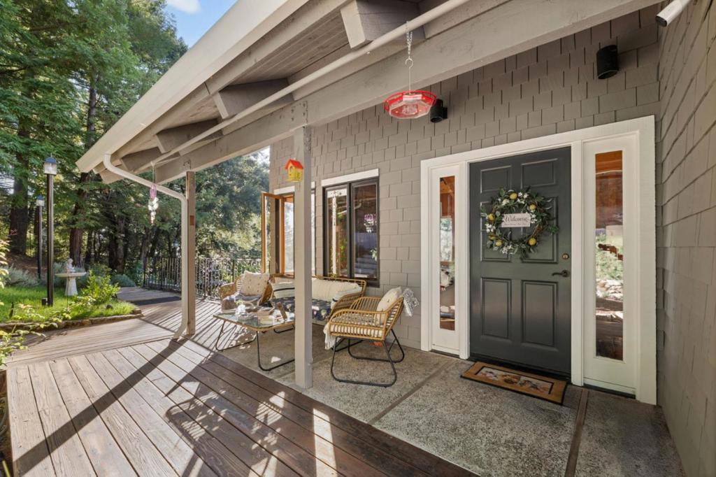 Tucked in the tranquil hills above Los Gatos, this beautifully upgraded retreat offers a rare mix of nature, comfort, and convenience. Set on 2.78 acres with stunning views, this three bedroom, two and a half bath home features an open floor plan with vaulted ceilings, hardwood floors, and floor to ceiling windows. Recent upgrades include, owned solar panels, energy efficient mini splits in every room, a newer roof, and remodeled bathrooms with heated floors. The home also features two fireplaces, one wood-burning and one newly installed propane, offering both charm and convenience in cooler months. A versatile bonus room with private entrance offers space for a studio, guest suite, or home office. Entertain on the expansive deck or relax in the hot tub under the stars. A two-car garage with 220V-powered workshop and a newly paved driveway complete the property. Zoning allows horses and chickens, with space to garden. Located just nine miles from downtown Saratoga and fourteen miles from downtown Los Gatos, Close to Castle Rock State Park, and top-rated schools. Move in ready with modern comfort in a peaceful setting.