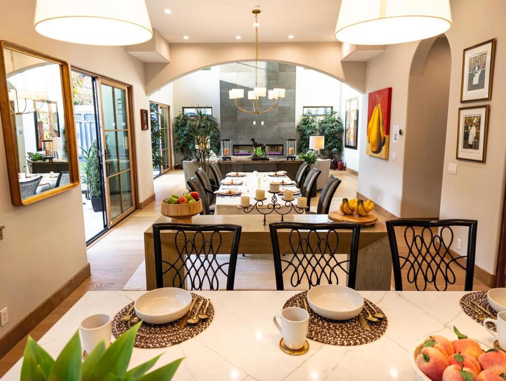 Cutting-Edge Design. Unrivaled Luxury. Ultimate Comfort. Situated on one of Willow Glens most beloved, holiday-lit streets, this brand-new home, just minutes from downtown and steps from Bramhall Park. Featuring 6 bedrooms, 4.5 baths, 4,000 SF of thoughtfully designed living space, a junior ADU and a detached 800 SF ADU ideal for multigenerational living. Enter through a striking 800-lb custom wrought-iron door into a grand double-height foyer soaring 22 feet, with wrap around stairs featuring custom metal railings, wide-plank luxury white oak flooring, a stunning wine cellar enclosed by LED-lit tempered glass panels and custom wood racks. The living room continues the drama: a 22.8-ft vaulted ceiling, wood ceiling beams, 20 dimmable LED downlights, and a custom fireplace clad in 23"x59" Steel Antracita ceramic tiles. The chefs kitchen impresses with a 48" AGA Mercury induction range, dual Viking refrigerators, Viking hood, Bianca Fina Revera Quartz backsplash, and 2.5" solid walnut floating shelves with integrated LED lighting. A Revera Quartz island glows beneath Clark pendants from Visual Comfort Studio. Finished with premium stain-grade interior doors and trim throughout, this residence on renowned Caminos Street embodies the essence of Willow Glen luxury and holiday charm.