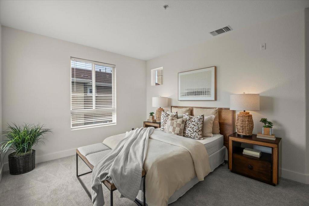 End-unit townhome in Lancaster Gate at the base of Communications Hill. Three ensuite bedrooms with walk-in closets, including a main-level suite and two additional suites on second level. The primary with vaulted ceilings, fireplace, and private balcony. Living room with tall ceilings, dining room and abundant light, tons of windows, and French door to balcony. Kitchen includes stainless appliances, gas cooktop, granite counters, casual eating area and glass sliding door to side entrance. Double pane windows, central A/C and 2 car attached garage. Steps from the renowned Comm Hill Grand Staircase, scenic walking and biking trails, and neighborhood parks with playgrounds. The community enhances your lifestyle with a sparkling pool, relaxing spa, and low HOA fees, while its prime location provides easy access to VTA Light Rail, Caltrain, downtown San Jose, shopping, and freeways 87, 85, 280, and 101.
