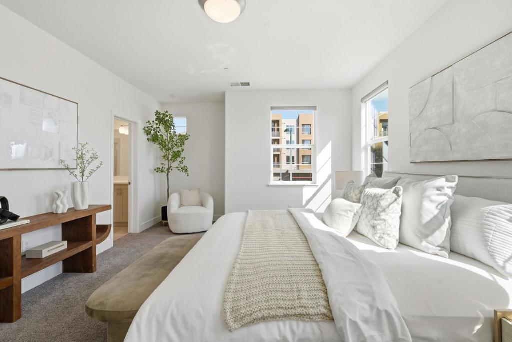 Holiday Special! Experience elevated living in this northeast-facing, like-new residence with 12 months of HOA dues fully covered and owned solar for energy efficiency. This contemporary 2-bedroom, 2-bath home spans 1,501 sq. ft. of sophisticated, light-filled interiors. Enjoy a gourmet chefs kitchen with premium appliances, elegant finishes, and an open-concept layout perfect for modern living. The primary suite features spa-inspired double vanities, a luxurious walk-in shower, and plenty of closet space for effortless organization. Perfectly situated near 880, 580, and the 92 San Mateo Bridge, this home provides an effortless commute 25 minutes to San Mateo, 30 minutes to San Jose, and 40 minutes to San Francisco. Conveniently close to BART, Cal State East Bay, shopping, and dining.