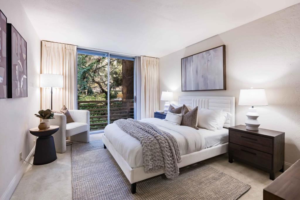 Discover comfort, privacy, and convenience in this beautifully updated 3-bed, 2-bath, 1,470 sq. ft. home located in the highly sought-after gated community of Sharon Heights. This light-filled unit features an open-concept living and dining area with floor-to-ceiling windows, creating a seamless connection to the surrounding greenery. The spacious kitchen offers plentiful storage and workspace, while the private balcony provides a serene outdoor retreat. The generous primary suite includes a large walk-in closet and an updated bath, complemented by two additional bedrooms ideal for guests, a home office, or flexible living. Community amenities include a pool, well-kept grounds, underground parking, and extra storage. Perfectly situated near Sharon Heights Shopping Center, Stanford University, top-rated schools, and easy access to 280, this home combines peaceful living with exceptional convenience.
