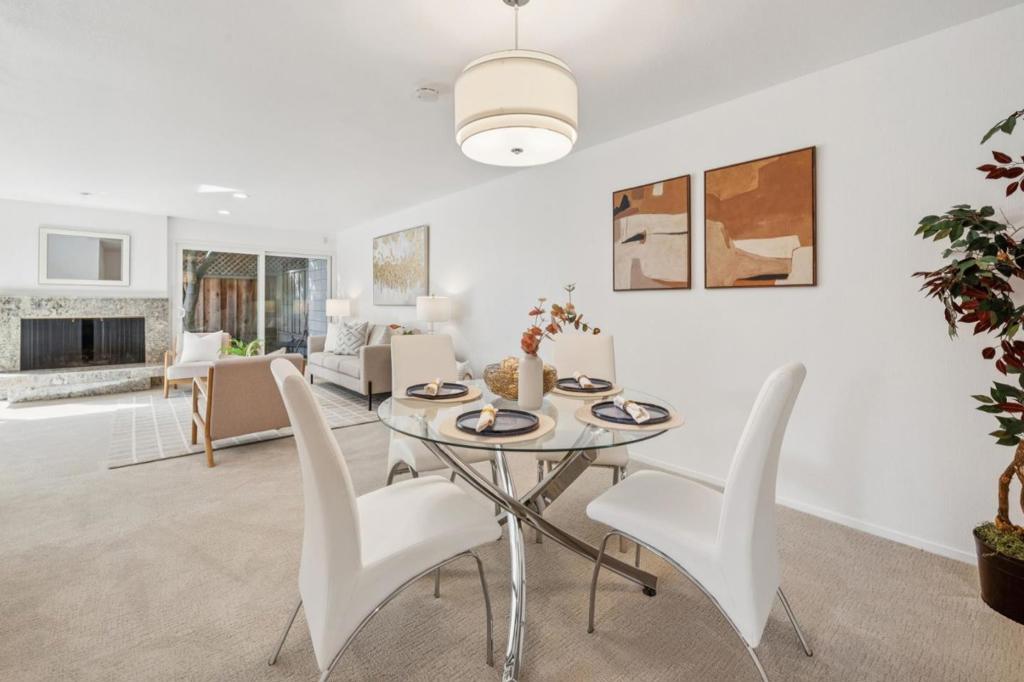 Welcome to this charming 2-bedroom, 2-bathroom home in the desirable city of Los Altos. Spanning 1,568 sq ft, this residence offers a comfortable and inviting living space. The kitchen is equipped with modern appliances, including a dishwasher, microwave, electric oven range, and refrigerator, making meal preparation a breeze. The formal dining room is perfect for hosting gatherings. The home features a versatile mix of laminate, tile, and carpet flooring. Enjoy cozy evenings by the fireplace. Natural light floods the interior, enhanced by skylights. The property includes convenient in-unit laundry with a washer and dryer. Residents can take advantage of the community amenities, including an in-ground pool. The home also offers two garage spaces for ample parking. Located within the Los Altos Elementary School District, this home blends comfort and convenience in a prime location. Don't miss the opportunity to make this delightful residence your own.