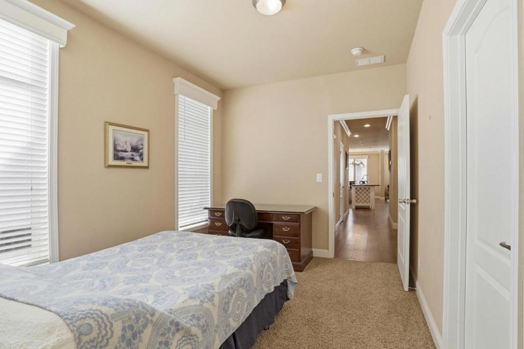 Beautifully designed 3-bedroom, 3-bathroom home featuring an open floor plan with a spacious living room, Gas fireplace, built-in shelving, and crown molding. The kitchen offers granite counters and ample cabinetry, while the den includes a built-in desk perfect for a home office. The large primary suite boasts a walk-in closet, dual sinks, soaking tub, and walk-in tile shower. A secondary suite and guest bedroom provide comfort and privacy. Additional features include laminate wood floors, plush carpet in bedrooms, and extra built-in storage. Located just minutes from the clubhouse, recreation center, and nearby shopping, dining, and tech campuses. Easy access to highways 237, 101, and 85. Enjoy comfort, convenience, and community living at its best in Willow Ranch!