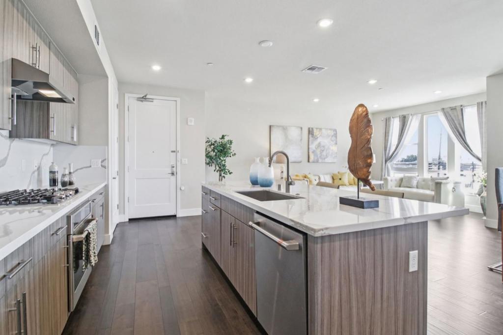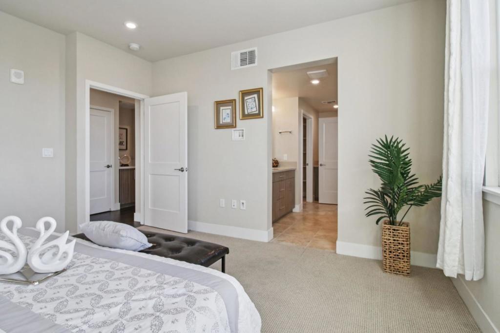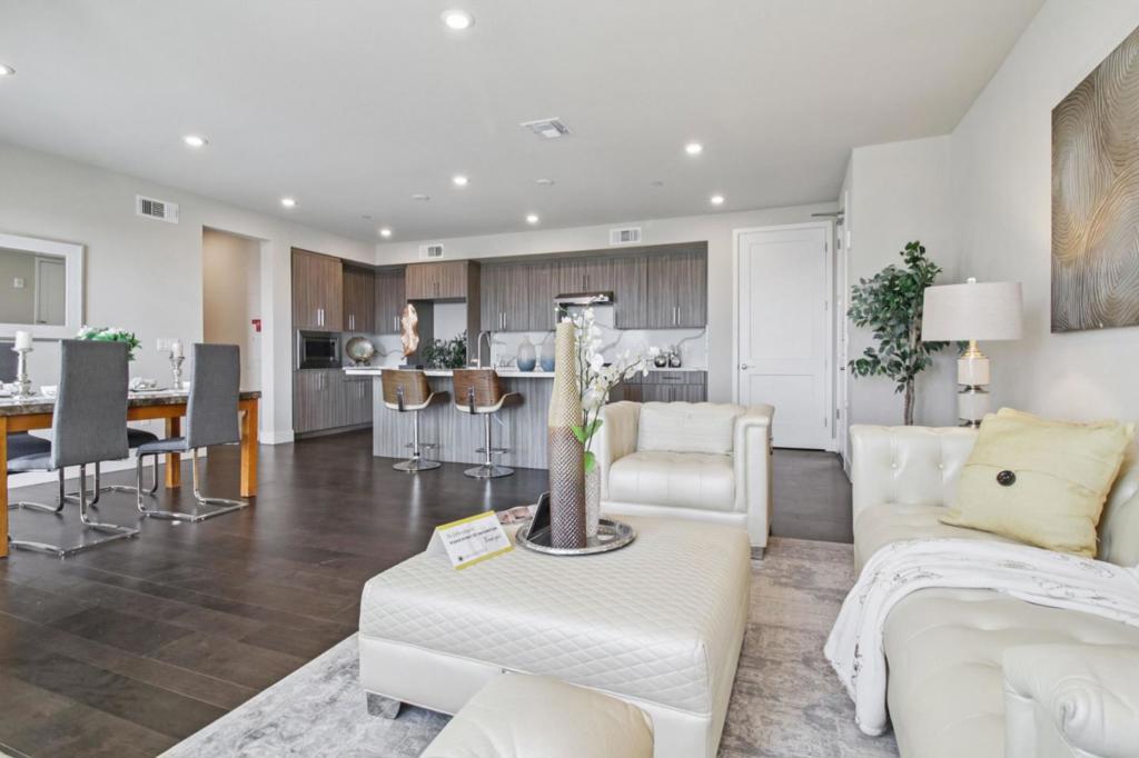 Experience California living in this beautifully designed single-story luxury condo. With an open layout and abundant natural light, this modern home features a chef's kitchen with ceiling-height custom cabinetry, quartz island, and built-in stainless steel appliances. The spacious primary suite includes a large walk-in closet and a sleek bathroom with dual vanities and a glass-enclosed shower. Additional highlights include owned solar panels, a 2-car tandem garage with an EV charging outlet, and extra storage space. Located in the highly desirable Innovation community, residents enjoy access to a clubhouse, BBQ area, fitness center, and swimming pool. Conveniently close to parks, top schools, grocery stores, restaurants, and within walking distance to BART. This move-in-ready home blends comfort, efficiency, and location.