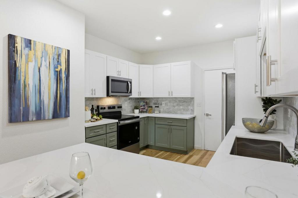 This meticulously renovated townhome offers sophisticated, turnkey living in a desirable Pacific Grove gated community - just minutes from world-class golfing at Pebble Beach, a charming downtown, and a stunning coastline. Inside, you will find new engineered hardwood floors, double-pane windows, a new garage door, and contemporary finishes throughout. The one of a kind, fully remodeled kitchen boasts new two-tone cabinetry, quartz countertops, a beautiful marble backsplash, and stainless steel appliances. Both bedrooms feature an attached seating area - perfect for an office, relaxing, or even an extra bedroom. The two upstairs bathrooms have been fully remodeled with elegant tile work and premium fixtures; the master bathroom has been converted to include a luxurious double vanity with an oversized LED mirror. The downstairs half bath, also fully remodeled, features a stylish vessel sink and custom wallpaper, adding a touch of elegance. An outdoor patio with a bubbling creek provides a tranquil retreat. This home exemplifies quality, comfort, and coastal style. Experience the best of Pacific Grove in this beautiful, move-in ready townhome.