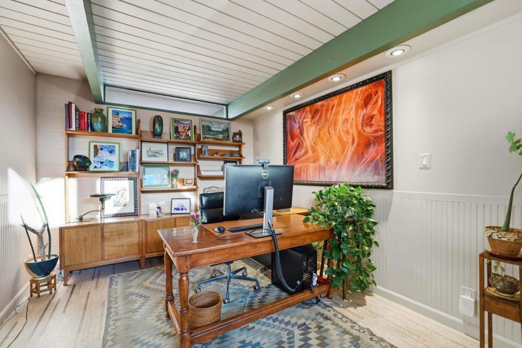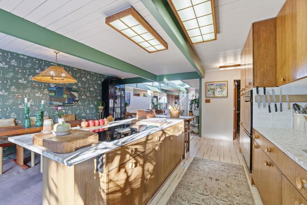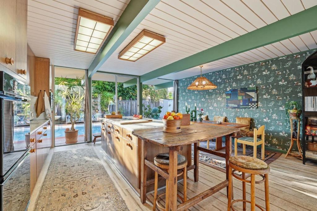 Eichlers attract artists of all kinds. Designed by interior designer Lisa Holleran, she defines Mid-Century Modern Maximalism with this truly special and unique Eichler located in the heart of Fairglen. The open layout centers around a spacious living room with high ceilings, flowing seamlessly into the dining area and completely upgraded kitchen. Walls of glass fill the home with natural light, creating an ideal setting for both entertaining and everyday living. Additional features include four bedrooms plus an office, completely upgraded bathrooms, a large separate family room with a fireplace, low-maintenance drought-tolerant landscaping, a zen-like resurfaced pool, newer roof, and an attached two-car garage. Located in a fantastic neighborhood known for its community block parties. Conveniently located only a few minutes away from dining, shopping, parks, and schools. Enjoy all that Willow Glen has to offer!