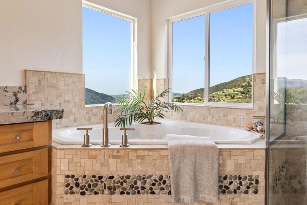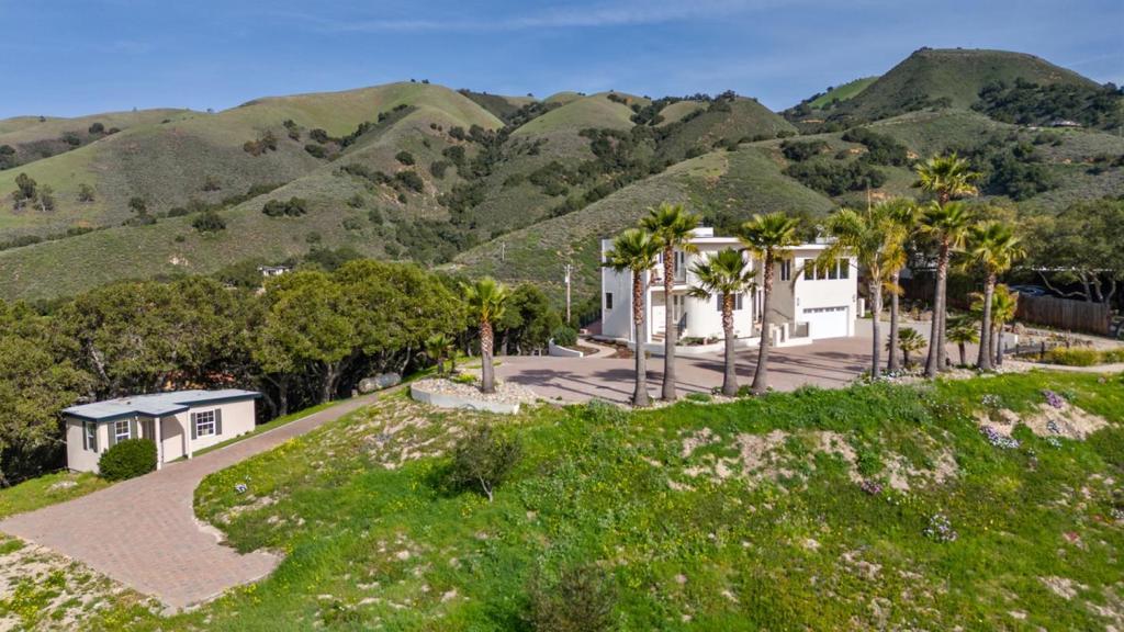 Perched above Carmel Valley Village, this stunning contemporary home captures the essence of California living with sweeping Santa Lucia mountain views and year-round sunshine. Featuring 3 bedrooms and 2.5 baths including two elegant primary suitesthis freshly painted residence showcases marble floors, high ceilings, and walls of glass that flood the interiors with natural light. The chefs kitchen is an entertainers dream with double ovens, warming drawers, wine fridges, and an ice maker, opening to a dining room and living area anchored by a grand river rock fireplace. Outdoor spaces include a stone fireplace, patio with hot tub, koi pond, and walking bridge surrounded by drought-tolerant landscaping. The detached guest casita offers its own kitchen, bath, and private parking. Gated entry, paver driveway, security system, and two-car garage complete this exceptional Carmel Valley retreat.