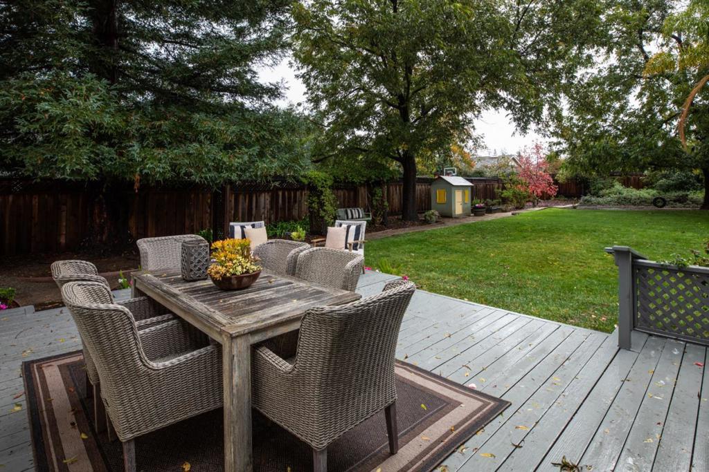 Rarely available flat 20,000 sq.ft. lot in South Los Altos. Enjoy this residence exactly as it is, or reimagine the interiors to reflect your unique vision and lifestyle. The kitchen invites culinary creativity with abundant cabinetry and direct access to the dining area, where a decorative mantel and wood-burning fireplace bring warmth and charm. The expansive family room with vaulted wood ceiling, gleaming hardwood floors, and an abundance of natural light stream through windows frame the enchanting backyard. Step outside to your private retreat with mature landscaping, spacious deck, playhouse, and majestic shade trees offering a serene escape. A tranquil koi pond and fruit-bearing trees infuse the space with life and beauty. This spacious single-level home features four bedrooms and two-and-a-half baths. The primary suite serves as a sanctuary, complete with direct access to a private outdoor hot tub perfect for unwinding beneath the stars. Three additional bedrooms share an updated bath, offering both functionality and cohesion for family living. A self-contained studio ADU enhances the property's flexibility ideal for extended family, a creative workspace, or a rental income. Close proximity to shopping, dining, parks, commute options, and top-ranked Cupertino schools.