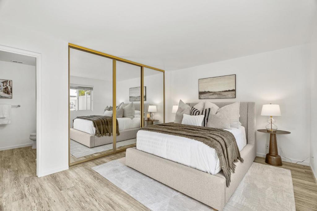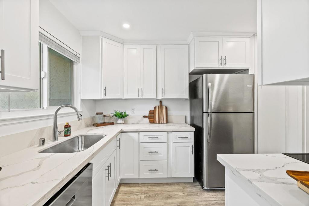A single-level move in ready home with no stairs and thoughtful updates throughout! This newly updated 2 bedroom, 2 bath condo is tucked into the desirable North San Jose area. As an end unit, it offers added privacy and a peaceful feel within the community. Inside, the home has been almost completely renovated. The kitchen features brand new white shaker cabinets, quartz slab countertops, new faucet and undermount stainless steel sink, and recessed lighting. Both bathrooms have been updated with white shaker vanities, new sinks and faucets, fresh light fixtures, and updated plumbing lines. The entire home has been repainted and finished with brand new luxury vinyl plank flooring and new hardware throughout. New top of the line HVAC. Enjoy the convenience of in-unit laundry and a one car garage with additional storage. A private patio sits just off the dining area and creates a perfect outdoor extension of the living space. You'll love this location with quick access to VTA, BART, and key freeways. Plus Ranch 99, Costco, and the Great Mall are only moments away for effortless shopping and dining.