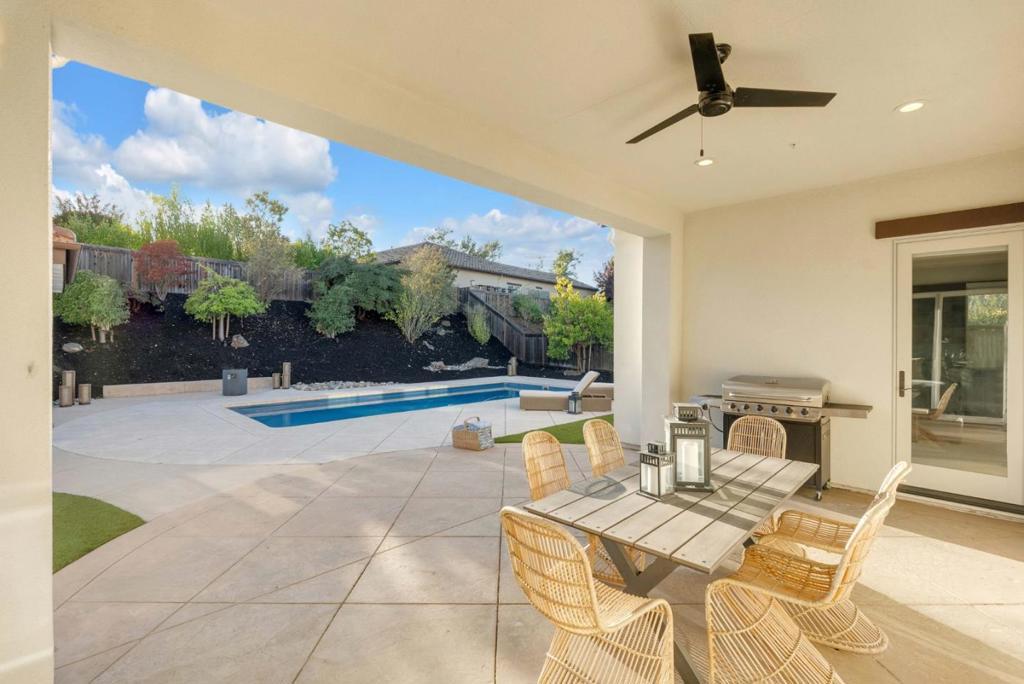 Nestled inside the gates of Eagle Ridge Golf Club, this former builders model home offers 3,206 sq ft of upgraded living on a 12,000 plus sq ft lot. The home features extensive designer enhancements along with an additional $300,000 in renovations. The chefs kitchen includes gas cooktops, quartz countertops, an island with a sink, state of the art appliances, and two wine refrigerators. The layout offers four bedrooms, including lower level primary bedroom with spacious walk in closet and additional junior suite. Bathrooms have been updated with quartz counters, upgraded marble mosaic walls, and double sinks. The main primary suite includes a custom walk-in closet with built-in organizers, a chandelier, soaking tub, and walk-in shower. Upstairs features two additional bedrooms, a loft that can converted to a fifth bedroom, and a balcony with neighborhood views. Additional highlights include high ceilings, an inside laundry room, a welcoming fireplace, and a finished three car garage with polished epoxy flooring and an EV hookup. The backyard is ideal for entertaining with an in-ground fiberglass pool, a covered California patio, and a pergola lounge area. A rare offering that blends comfort, elegance, and significant upgrades, experience the best of Eagle Ridge living.