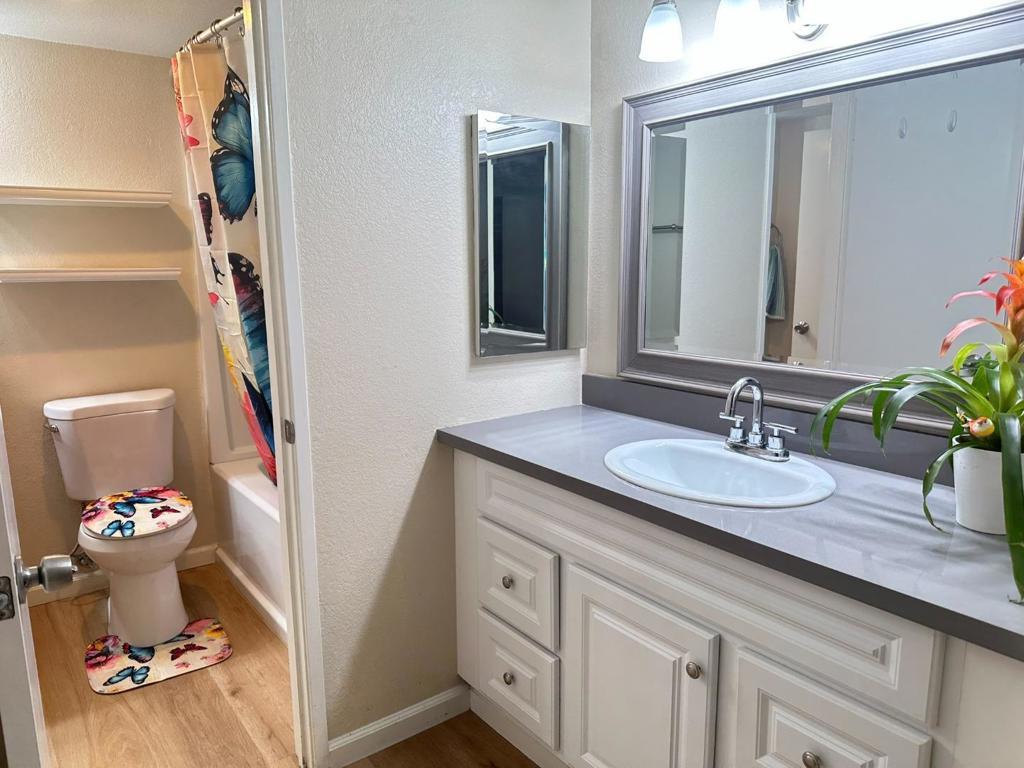 Move-in ready ground-floor 1BD/1BA condo in a quiet gated San Jose community! New Carpet ! This Unit has its own full size Washer & Dryer Complex has a Tennis Courts Swimming Pool Enjoy serene pond views, a cozy fireplace in the living area, an updated kitchen with stainless steel appliances and generous counter space, plus a private patio for outdoor relaxation. New carpet in the bedroom, and modern wood laminate flooring throughout the Unit. HOA covers water, garbage, roof, exterior maintenance, cable TV with DVR, and access to scenic walking paths. Located minutes from Highways 101, 880, and 87, as well as nearby shopping and dining the perfect blend of comfort and convenience. This is one of the Best Units inside this Gated Community, since unit is located in the Back of the Complex Ground Floor. Peaceful Redwoods and Ponds throughout the Complex. Units provides You one (1) Covered Parking space, and none-covered parking space and one (1) Guest Parking Space. Ponds and Ducks found in several parts of the Complex. On 06/07/25 I saw a group of ducks with their baby ducks!. CALL LAURA RIVERA TO SHOW OR FOR MORE INFORMATION 408 393 5815 Seller is selling " AS IS "