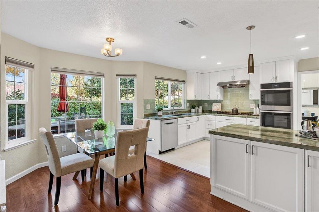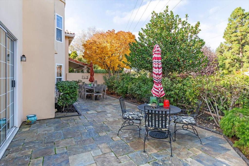 This is the home you have been waiting for! Beautifully remodeled Cuernavaca Plan F with 4 bedrooms and 2.5 baths. Newer custom-built gourmet kitchen features Brazilian Quartzite counters, 5 burner gas range, built-in double ovens, stainless steel appliances & pullout pantry. The living & dining rooms feature 12 foot ceilings and lots of windows- The family room has a gas fireplace. The main floor has all new white oak flooring & 2 sliding doors to the lovely yard. The primary bedroom suite has a walk-in closet, private patio & gas fireplace. The primary bath has granite counters, double vanities, Porcelanosa tile flooring and a modern soaking tub. The hall bath has a sky light, tub/shower, & double vanities in a granite slab counter. One bedroom has a built-in desk and cabinets & is perfect for a home office or a bedroom. This amazing home has wood flooring and recessed lighting throughout. Situated on a quiet cul-de- de-sac, this home backs up to a lovely greenbelt. The yard features several areas for dining, with mature flowering plants and artificial lawn. Cuernavaca is a fantastic community offering pool & spas, tennis court, clubhouse with fitness center & tot lot. Fantastic central Mountain View location near employment, shopping & transportation. Must see!