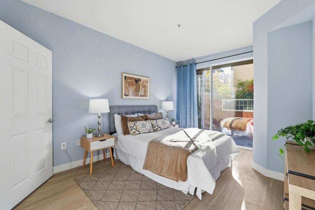 Discover the best of urban living in this beautiful condo in the heart of downtown San Jose. Ideally located in the community, this unit shares no common walls with neighboring units. Located adjacent to stairwell & hallway, this unit only adjoins neighbors via ceiling and floor. With spacious open floor plan, this home features updated kitchen with brand-new stainless steel appliances. Newly installed LVP flooring and baseboards build a beautiful foundation. Enjoy the convenience of an in-unit stackable washer & dryer, central heating & A/C, and a walk in closet. Step out onto your private patio, ideal for relaxing or entertaining guests. Additional storage included. Ryland Mews offers a secure, amenity-packed community with a large pool, hot tub, fitness center, community lounge, green spaces, BBQ area, EV charging stations, and guest parking. Located just minutes from San Jose Marketplace (Coleman Shops), San Pedro Square Market and Japantown, with easy access to restaurants, shopping, VTA Light Rail, and major commuter routes. Don't miss out on this amazing opportunity schedule a tour today!