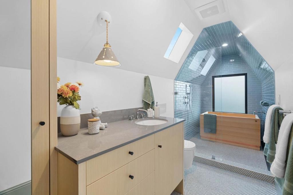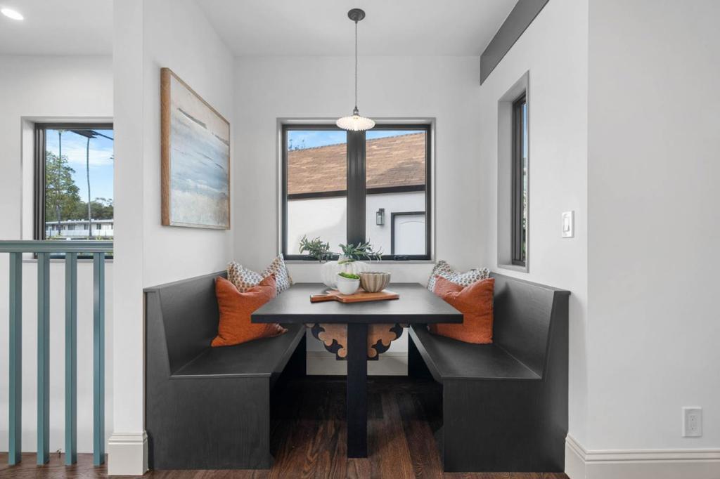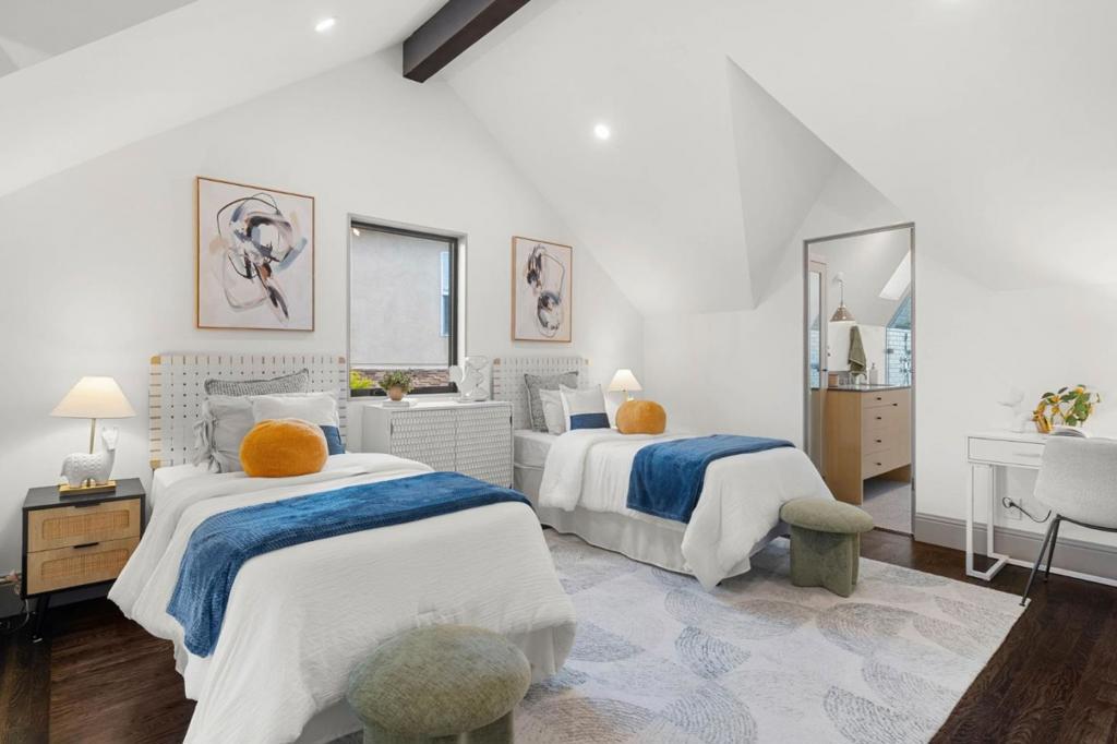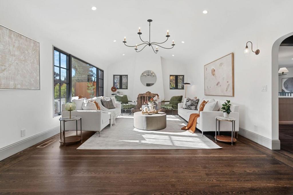 Meticulously modernized Tudor home on a 9,557 sq ft lot adjacent to Creeside Park and steps to the Stevens Creek Trail. This 2,439 sq ft residence offers 4 bedrooms and 3.5 bathrooms with genuine hardwood flooring, smooth plaster walls, wide baseboards, designer lighting, recessed lighting with dimmers, dual-zone climate control, central heating and cooling, and a durable metal roof. The formal living room features vaulted arched ceilings, gas fireplace, and oversized picture windows. The chefs kitchen includes quartz countertops, oversized island with seating, frameless soft-close cabinetry, Dacor refrigerator, BlueStar dual-oven range, custom plaster hood, pantry, breakfast nook, and under-cabinet lighting. Spacious formal dining area. The upper-level primary suite offers vaulted ceilings, custom built-ins, dual closets, seating area, and a spa-like bath. A second upstairs en-suite features a walk-in closet and soaking tub. Two additional ground-floor bedrooms, laundry between upstairs bedrooms, partial basement bonus space, powder room, and full bath complete the interior. Exterior highlights include a newly installed asphalt driveway, hedging with drip irrigation, and patio. Fully insulated detached two-car garage with heating, cooling, washer/dryer hookups, and RV hookups.