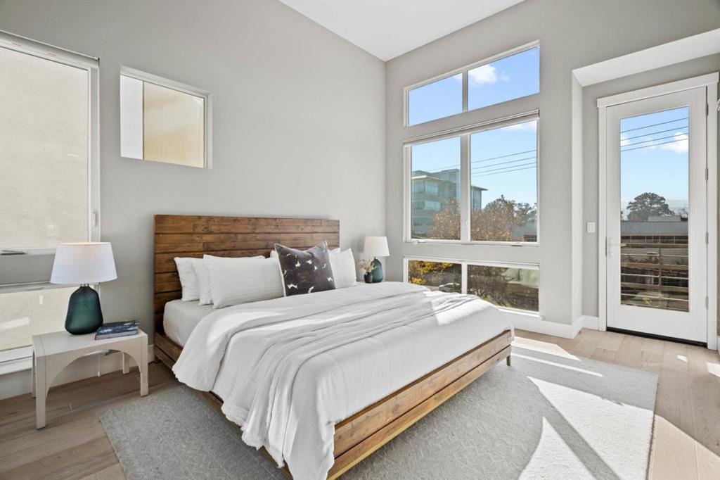 Lives like a single family home! This newer-construction townhome offers the privacy of a single-family home with no shared walls, direct street side entrance, an attached/enclosed two-car garage with extra storage and a private patio, all just blocks from the vibrant downtown. Natural light fills the home thanks to Southwest exposure and an open plan with tons of windows and high ceilings. Designed for luxurious living, the home includes two en-suite bedrooms, including an oversized primary bedroom with overheight ceilings and expansive views of the hills, and a third oversized bedroom for guests, an office, or both. A separate laundry room on the bedroom level adds to the convenience, and an enclosed patio right off the living room creates a seamless indoor/outdoor California living experience. Two additional balconies add to the outdoor experience and are the perfect spot to watch the sunsets over the hills. A rare opportunity for this unique property, just minutes to all of Silicon Valley!