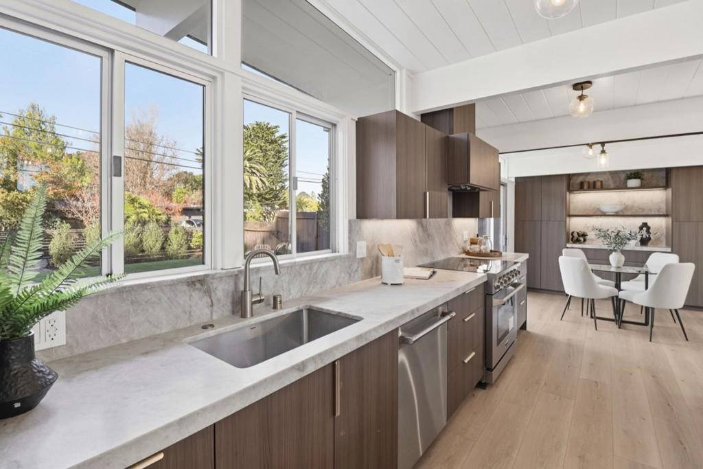 Discover modern California living in this beautifully remodeled Eichler-style home located in the highly sought-after San Mateo Highlands. This 4-bedroom, 2-bath residence blends iconic mid-century design with contemporary luxury, offering an inviting open-concept layout with abundant natural light. The heart of the home is the gourmet chefs kitchen, thoughtfully designed with a spacious island, premium new appliances, custom cabinetry, and sleek Taj Mahal Quartzite countertops, perfect for cooking, entertaining, and everyday living. The kitchen flows seamlessly into the expansive living and dining areas, creating a warm and functional space ideal for gatherings both large and small. Well-appointed bedrooms and tastefully updated bathrooms offer comfort and style, while the homes clean lines and indoor-outdoor connection reflect the timeless appeal of Eichler architecture. Situated in a desirable neighborhood known for its community feel and scenic surroundings, this property is just minutes from shopping, parks, and top-rated schools, with easy access to major freeways for convenient commuting. A rare opportunity to own a turnkey home in one of San Mateos most coveted enclaves.
