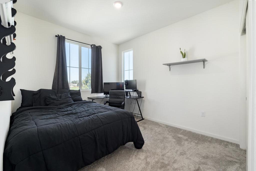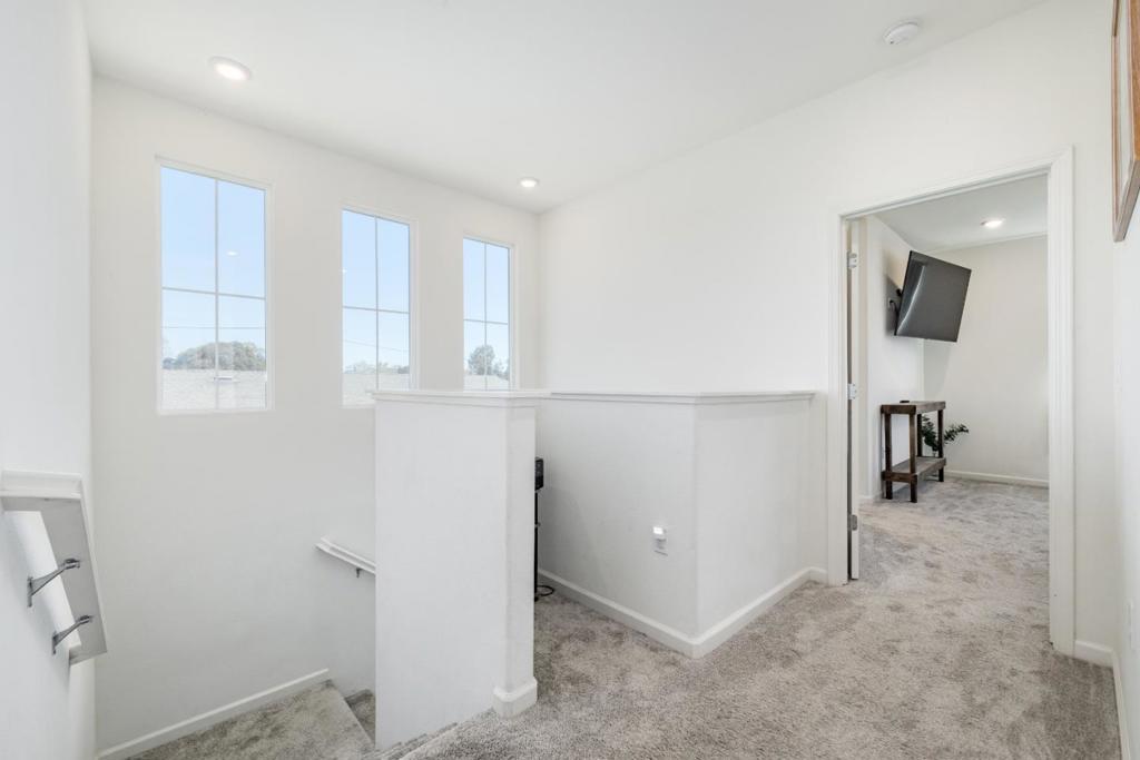 This immaculate contemporary home is just 4 years new and includes high ceilings, modern finishes, easy maintenance, and an abundance of natural light. Inside you will enjoy the open living room, inviting dining area, and a well-appointed kitchen featuring stainless steel appliances, gas range, microwave hood, elegant granite countertops, and convenient breakfast bar. Upstairs, the primary suite is complete with a large walk-in closet and en-suite bathroom. The 2 additional bedrooms have excellent separation of space as well as their own nicely appointed bathroom with tub and shower. Built in 2021, this home is equipped with state-of-the-art features, including owned solar panels, energy-efficient systems, car charging hookup, ensuring future sustainability and cost savings. The attached two-car garage includes overhead and rear storage, ample parking and/or entertainment space. No HOA dues. This DETACHED single-family home located on a quiet corner lot, is conveniently located near downtown, dining, shopping, parks, and highways. An easy drive to Hollister Hills SVRA and San Juan Bautista. ASSUMABLE 2.99% INTEREST ON FHA LOAN ON $486,000.
