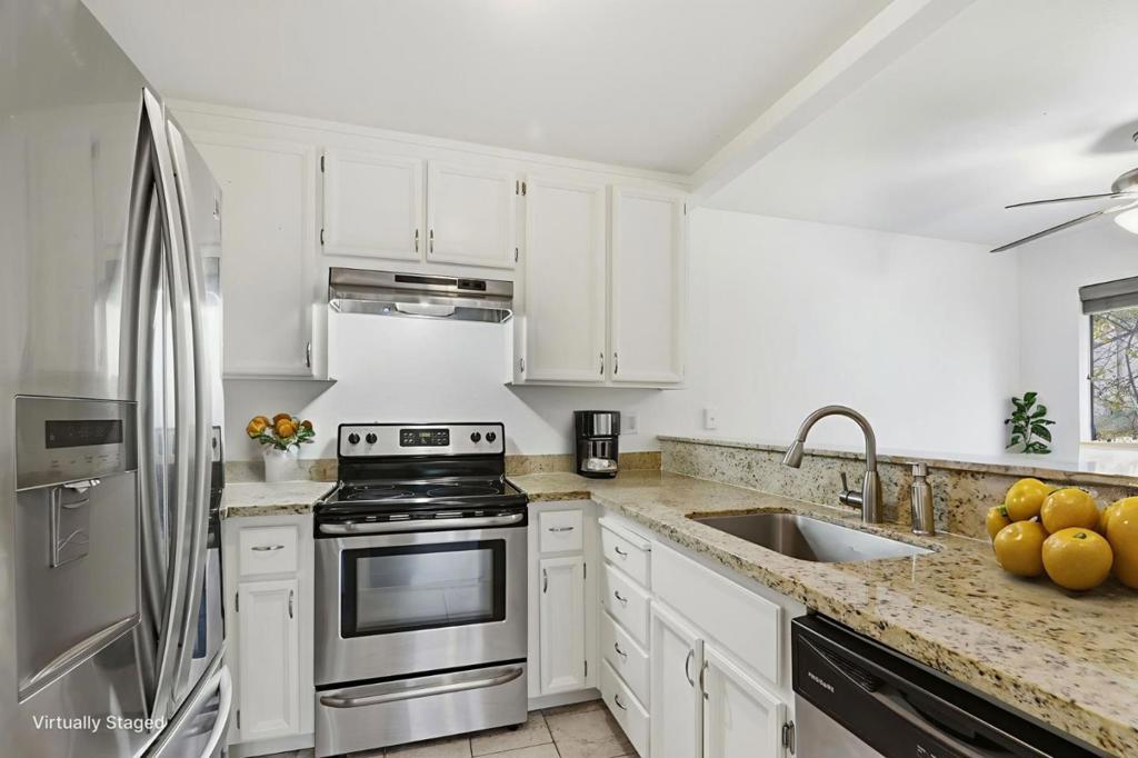 Stunning condo located in one of the most desirable locations in the complex. Quiet neighborhood with views of the meticulously manicured grounds, and massive trees. This second-floor condo has been remodeled with contemporary and stylish finishes. Its gorgeous with an open floor plan and a cozy fireplace. The remodeled kitchen is striking with granite counters, white cabinets, and stainless-steel appliances. The bathroom is elegant with updated vanity, modern fixtures, and tile shower. The bedroom is spacious and full of natural light. Additional amenities include a laundry room in unit, peaceful patio with storage closet, central A/C, wifi thermostat, wood laminate flooring, community clubhouse, pool, and spa. Walking distance to the new Village Oaks shopping and dining area.