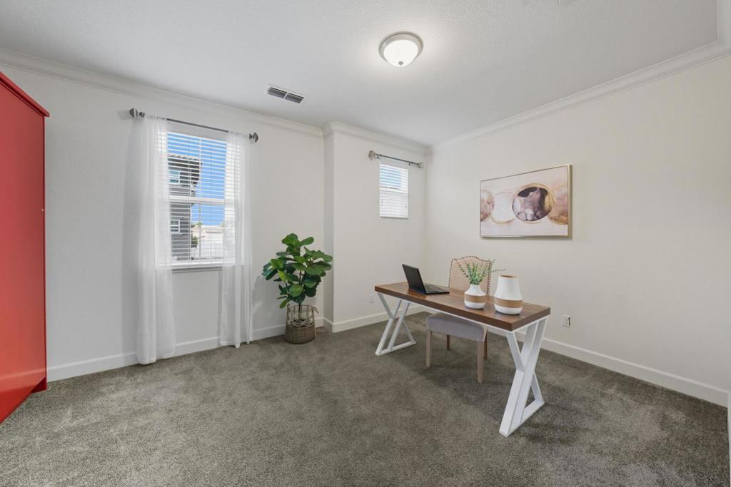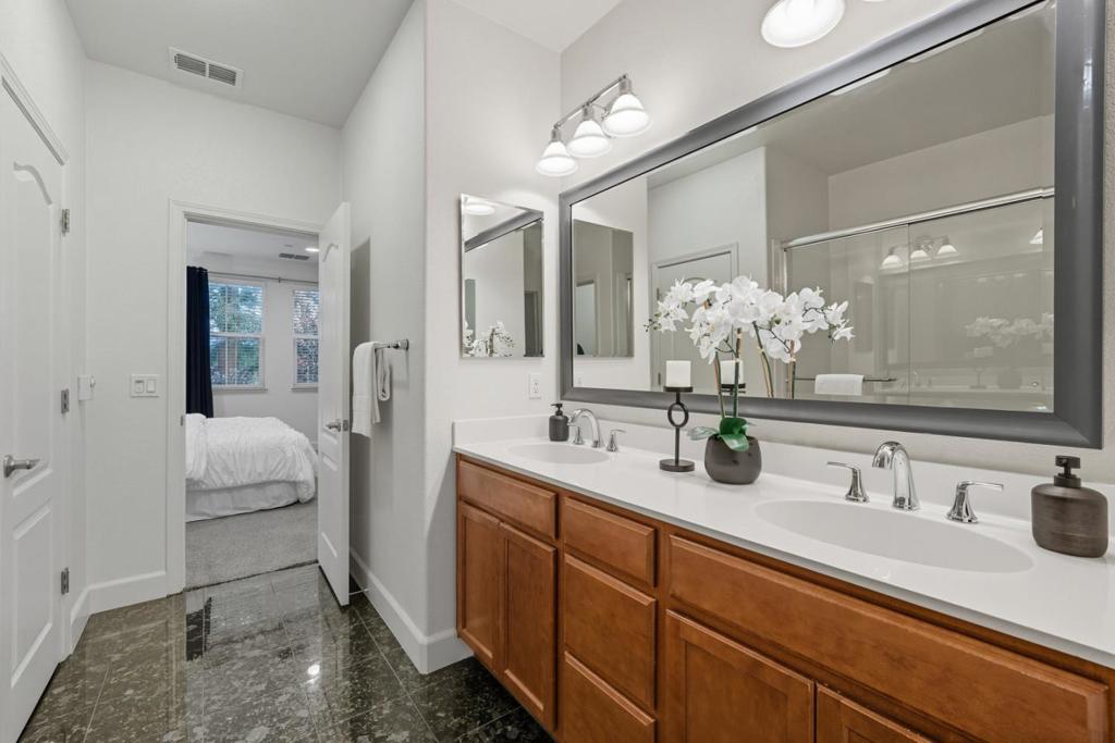 Charming townhouse-style condo just moments from Santana Row and Westfield Valley Fair! This inviting home features a open floor plan with a great living, dining, and kitchen areas. The heart of the home is the stylish kitchen, offering stainless steel appliances, sleek cabinetry, and tasteful finishes that blend functionality with modern flair. A main-level bedroom and full bath provide the perfect guest retreat or home office setup, complete with a convenient built-in Murphy bed to maximize space. Step outside to a cozy front courtyard setting with views of the parkideal for morning coffee or unwinding in the evening. Shared BBQ facilities nearby add to the community-friendly vibe. Upstairs, the spacious primary suite serves as a relaxing escape, featuring dual sinks, a glass-enclosed shower, and a generous walk-in closet. A junior suite with its own private bathroom and a separate laundry room add convenience. Additional highlights include central heating and air conditioning, 2-car tandem garage, and an unbeatable location within walking distance of top rated shopping, dining, gyms, entertainment, and Frank M. Santana Park. Perfectly positioned near major employers like Apple and Nvidia, with quick access to highways 280, 880, and commuting.