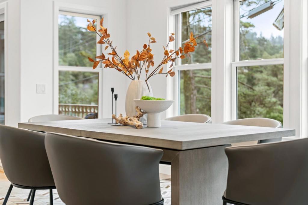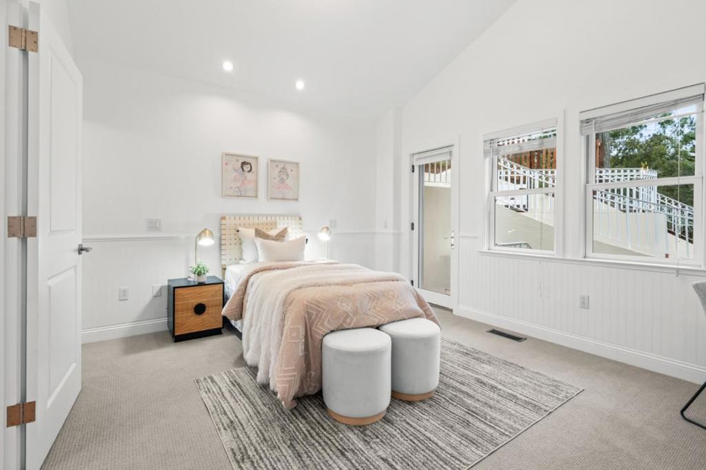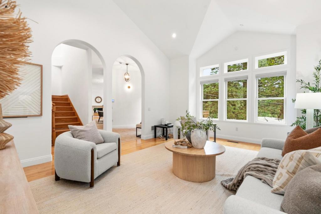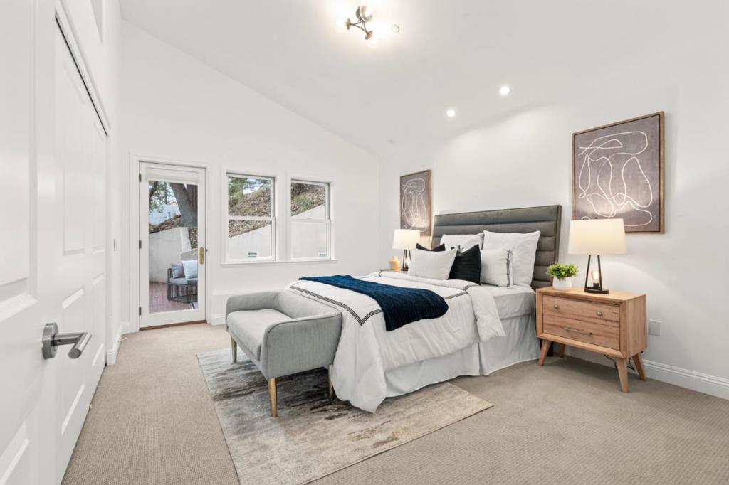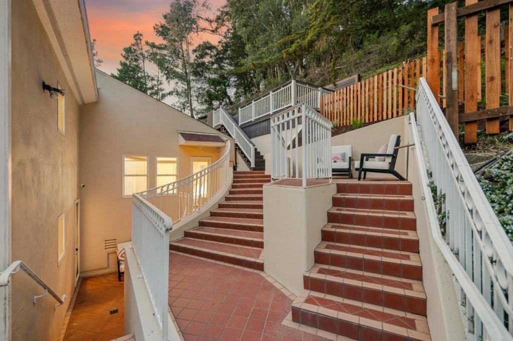 Tucked into Montclairs peaceful wooded hills, this contemporary residence offers exceptional privacy, generous natural light, and a highly functional multi-level layout. The main floor centers around a chefs kitchen equipped with Viking appliances and an LG InstaView refrigerator, seamlessly connected to the dining room and two bright living areas with skylights, a wood-burning fireplace, and a tiled balcony for enjoying morning coffee or evening breezes. All four bedrooms are thoughtfully placed for comfort: three feature en-suite bathrooms and direct access to outdoor patios, including a spacious primary suite with hillside views. The lower-level bedroom with its own entrance provides flexibility for in-laws, an au pair, extended guests, or work-from-home needs. Terraced outdoor spaces climb the hillside and offer multiple areas to relax among serene treetop vistas. Additional amenities include a ground-level laundry area, a three-car garage plus extra off-street parking, and close proximity to Montclair Village, parks, trailheads, top-rated schools, and the long-established Hills Swim & Tennis Club. A rare opportunity to enjoy both privacy and convenience in one of Oaklands most desirable neighborhoods.