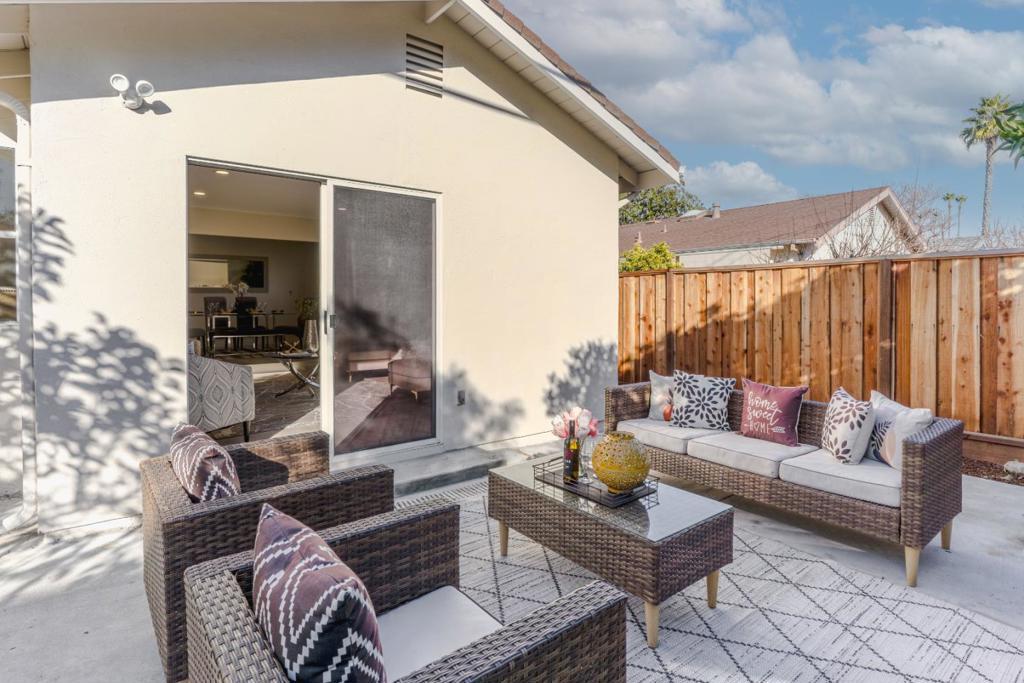Welcome to this beautifully refreshed 3-bedroom, 2-bathroom Santa Clara home offering modern elegance and everyday comfort in one of Silicon Valleys most convenient locations. Thoughtfully updated throughout, this home features stunning marble bathrooms, luxury plank flooring, a quartz kitchen countertop, and brand-new, top end appliances that elevate both style and functionality. The inviting great room provides an open, airy space ideal for relaxing or entertaining, while the separate dining room offers a perfect setting for gatherings and special occasions. New modern lighting throughout the home enhances the contemporary feel and highlights the clean, sophisticated finishes. Step outside to a lovely backyard designed for both enjoyment and versatility, complete with a BBQ area, mature orange and apple trees, and a storage shed that can easily serve as a small hobby shop or creative workspaceperfect for gardening, projects, or extra storage. Ideally located near major tech employers including NVIDIA, Apple, and Google, this home also offers walkable access to parks, restaurants, and shopping, making daily living effortless and enjoyable. With its tasteful updates, flexible layout, and prime location, this home is a standout opportunity in the heart of Santa Clara.