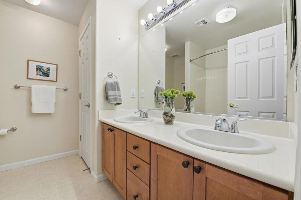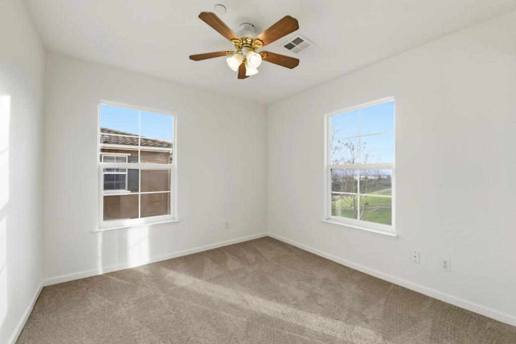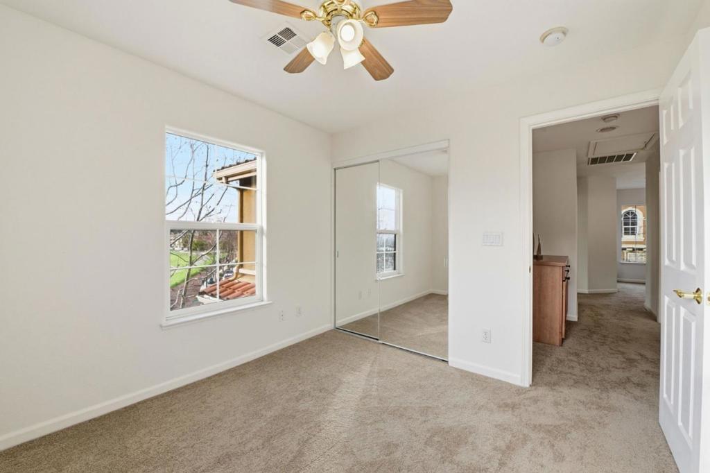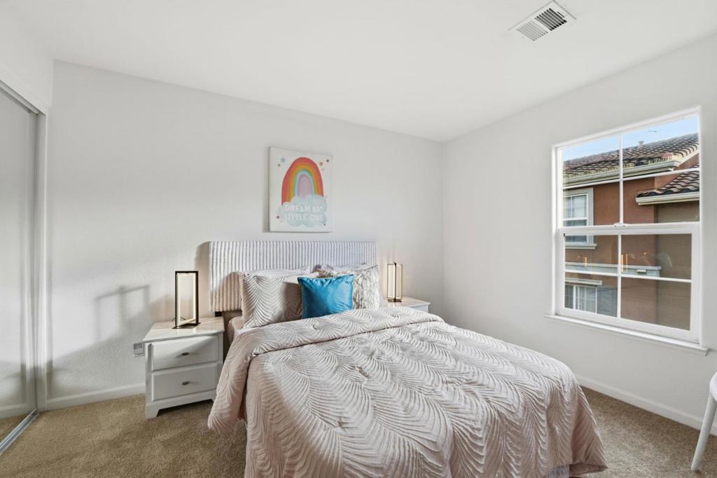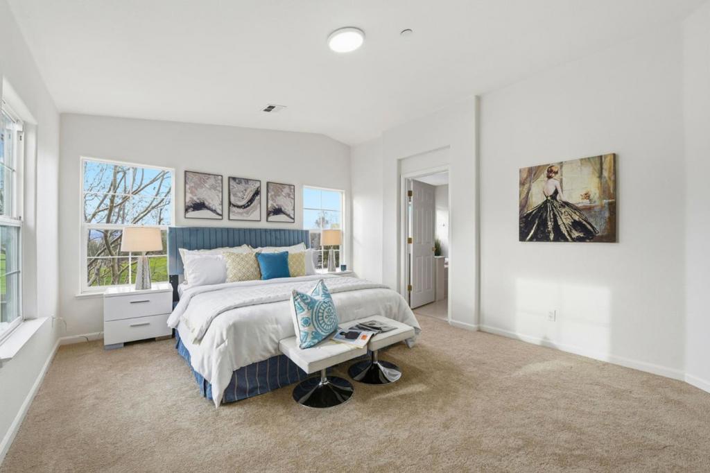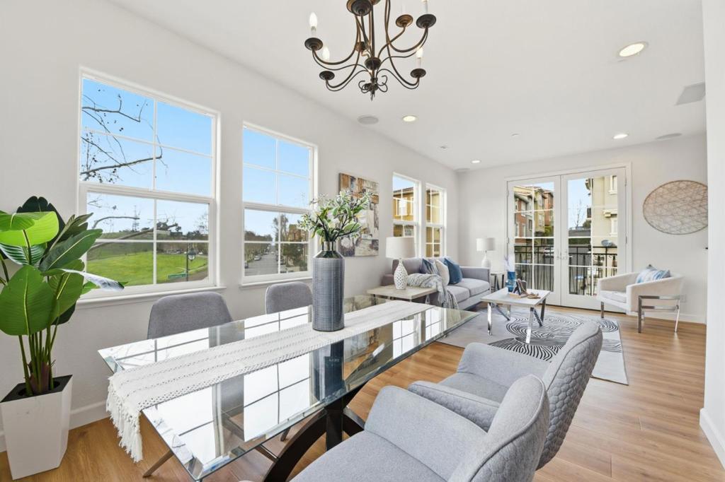 This beautiful end unit 2,416 sq ft, 4 bedroom, 3.5 bath condo offers breathtaking views across the Santa Clara Valley & the Santa Cruz Mountains from Communications Hill with no unit above or below. The kitchen anchors the main living area with granite countertops, an island with bar seating, a new microwave, roll out cabinet shelving & a seamless connection to the dining & family areas. The family room is bright & welcoming, offering ample space for gathering or relaxing. A butler pantry leads to a second dining area & living room, perfectly positioned to capture valley views, where French doors invite abundant natural light & fresh air. The primary suite is a true retreat with vaulted ceilings, a walk in closet & sweeping hilltop & valley views. The primary bathroom features dual sinks, a walk in shower & a separate tub. One bedroom & full bathroom on the ground floor provide flexibility for guests or multigenerational living. New carpet & laminate flooring enhance the three levels. Additional features include dual pane windows, a dedicated laundry room & a side by side two car garage with separate doors. Enjoy a quiet hilltop setting with convenient access to Vieira Park, nearby walking trails, & just a short drive to grocery stores & restaurants.