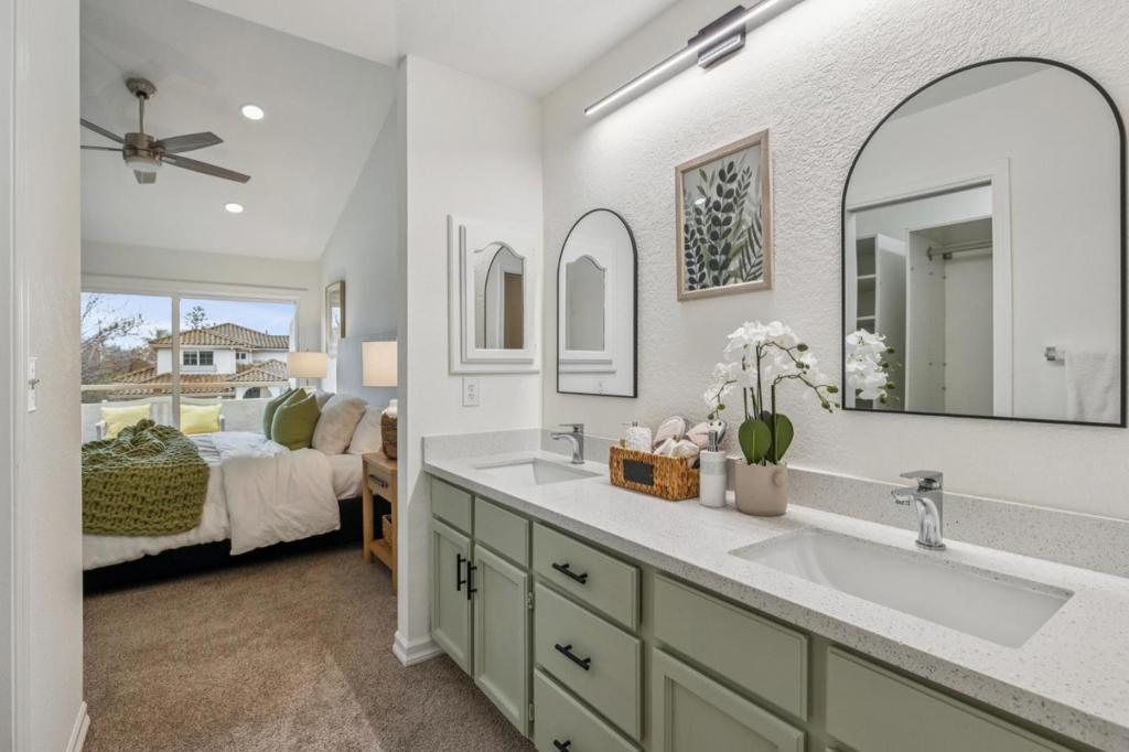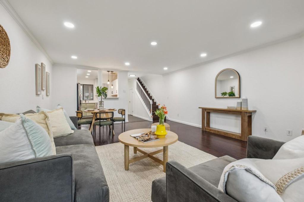 Welcome to this spacious and beautifully refreshed Sunnyvale townhome, ideally located within the highly sought-after Cupertino school district. Featuring an oversized living area with soaring ceilings and abundant natural light, this home feels open, bright, and inviting from the moment you step inside. The thoughtfully designed layout includes two generous suites, offering comfort and privacyperfect for families, guests, or a work-from-home setup. Freshly painted interiors and newly updated cabinetry provide a crisp, modern feel, while stainless steel appliances and sleek quartz countertops elevate the kitchen with contemporary style. Step outside to your private backyard spaceideal for outdoor entertaining, weekend barbecues, or simply relaxing in the California sunshine. Situated in one of Sunnyvales most desirable locations, youre just minutes from downtown, major freeways, shopping, dining, work, and award-winning schools. With a low HOA and unbeatable convenience, this is an opportunity you dont want to miss.