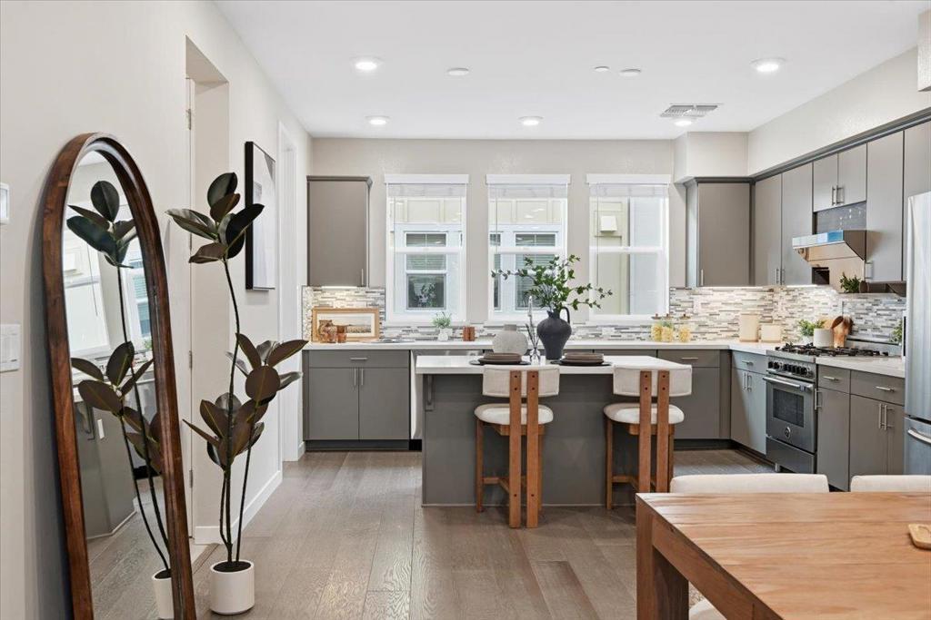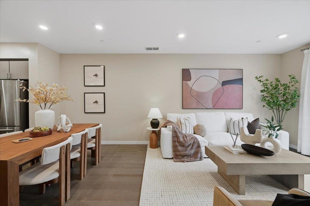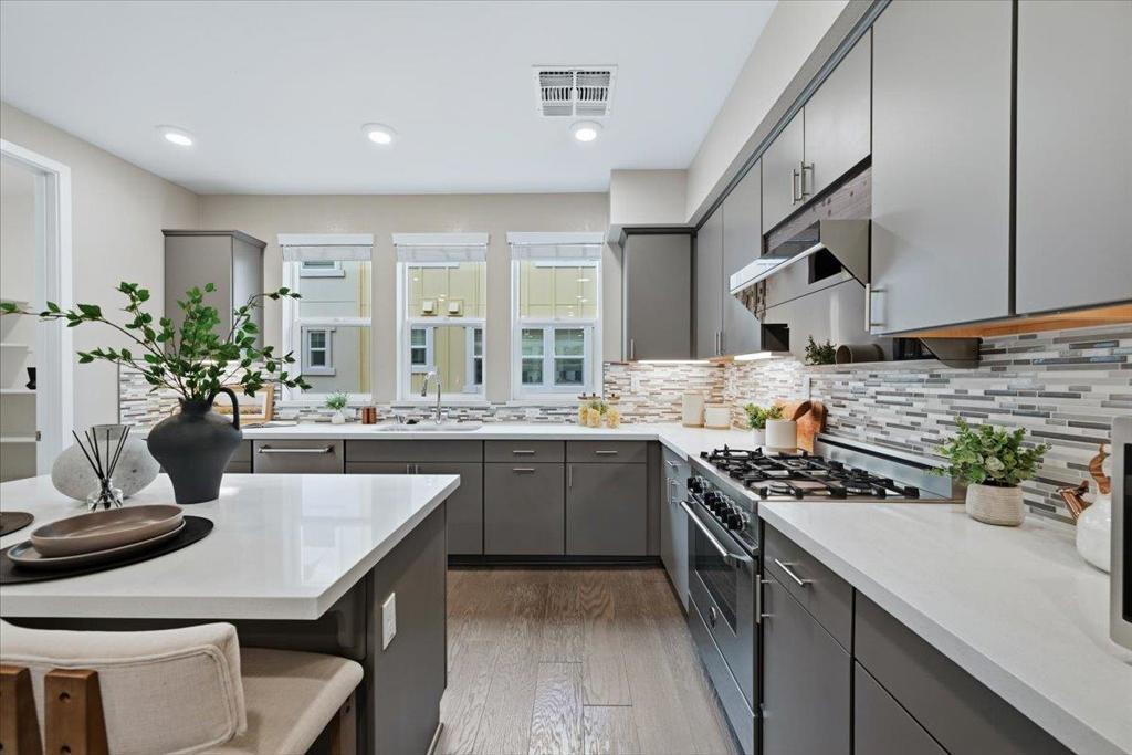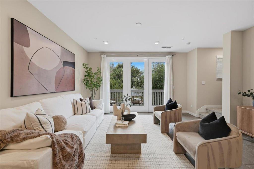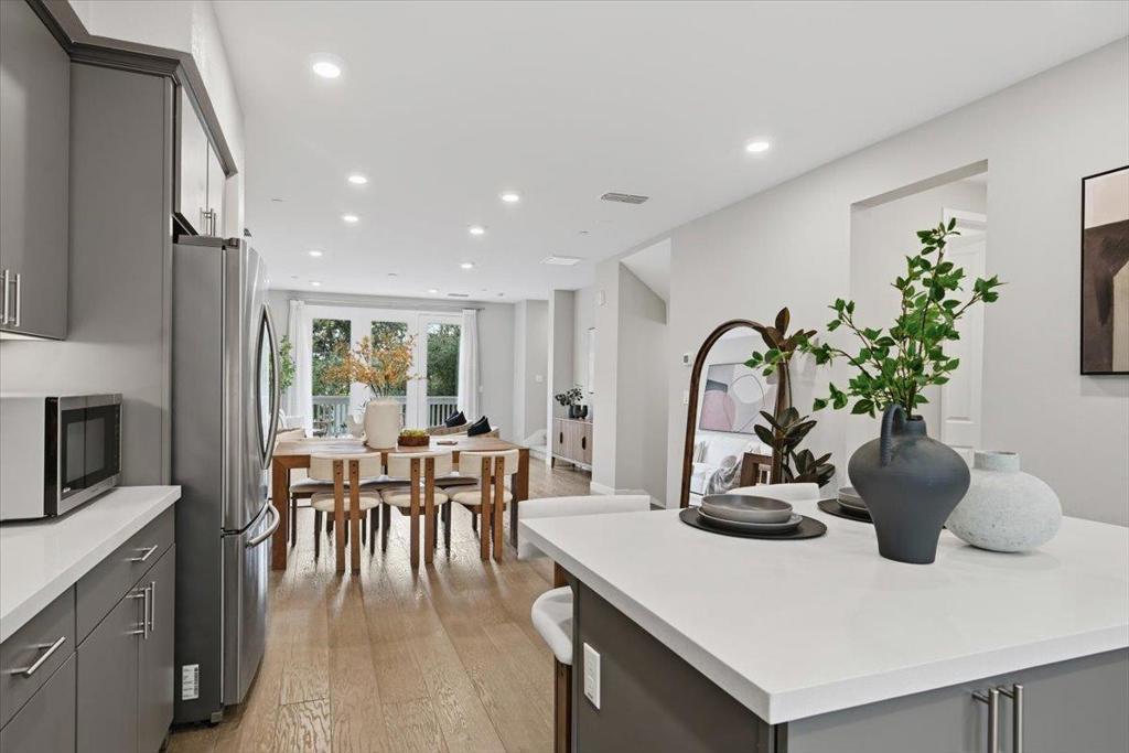 Welcome to this modern three-story townhouse, situated in the desirable Vale community. Built in 2018, this exceptional home offers 3 bedrooms, a den, 2 full baths, and 2 half baths. The 1st floor features a den and a half bath, ideal for an office or fitness area. The main floor impresses with a bright, open-concept living space. The gourmet kitchen features sleek quartz countertops, SS appliances, a spacious island, a walk-in pantry, and an adjacent half bath. Step onto the expansive balcony to enjoy fresh air. The top floor boasts a primary suite with soaring 11 ft ceilings, a walk-in closet, and a bathroom with dual sinks. Two additional bedrooms share a full bathroom with a soaking tub. Additional highlights include high-end laminate flooring, smart home features, a EV wall charger, multi-zone A/C, a tankless water heater, and a two-car side-by-side garage. The community offers playgrounds, a clubhouse, and low HOA fees. This prime location offers excellent connectivity with major highways, and Caltrain, providing an easy commute to major tech employers such as Meta, Apple, and Google. Walking distance to nearby parks including Magical Bridge and Wiser Park. Close to grocery stores, restaurants, and shopping centers. Don't miss the opportunity to make this home yours!